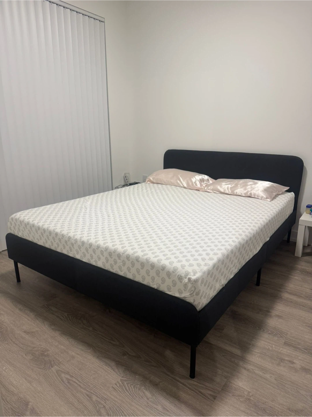 Move-out sale! Selling an IKEA queen-size metal bed frame with a clean, comfortable 8-inch mattress. Both are in good condition and well maintained. Used for 6 months.
