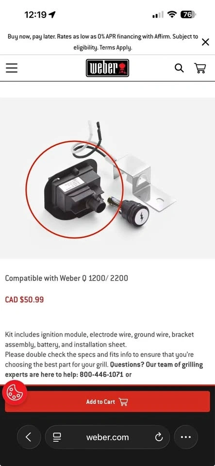 Buy & SellWeber Ignition Module (Igniter)Weber Ignition Module (Igniter)$20Weber BBQ igniter only. Compatible with Q series models, easy replacement if your bbq grill igniter is not working.WHERE TO MEETCheck LocationView MapSELLERverifiedSukhmanCentral Maple Ridge650 reviews0 chats·0 favorites·0 viewsSEND CHAT TO SELLERHi Sukhman! I’m interested in your listing.Hi Sukhman! I’m interested in your listing.Get the Karrot app to chatSign In to chat
