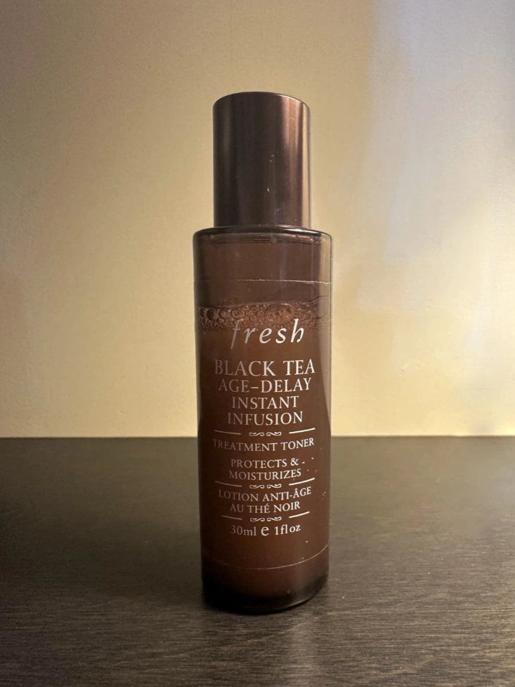 Selling a Fresh Black Tea Age-Delay Instant Infusion Treatment Toner. This toner protects and moisturizes, leaving your skin feeling refreshed. It comes in a 30ml bottle with 3/4 left. Perfect for incorporating into your daily skincare routine