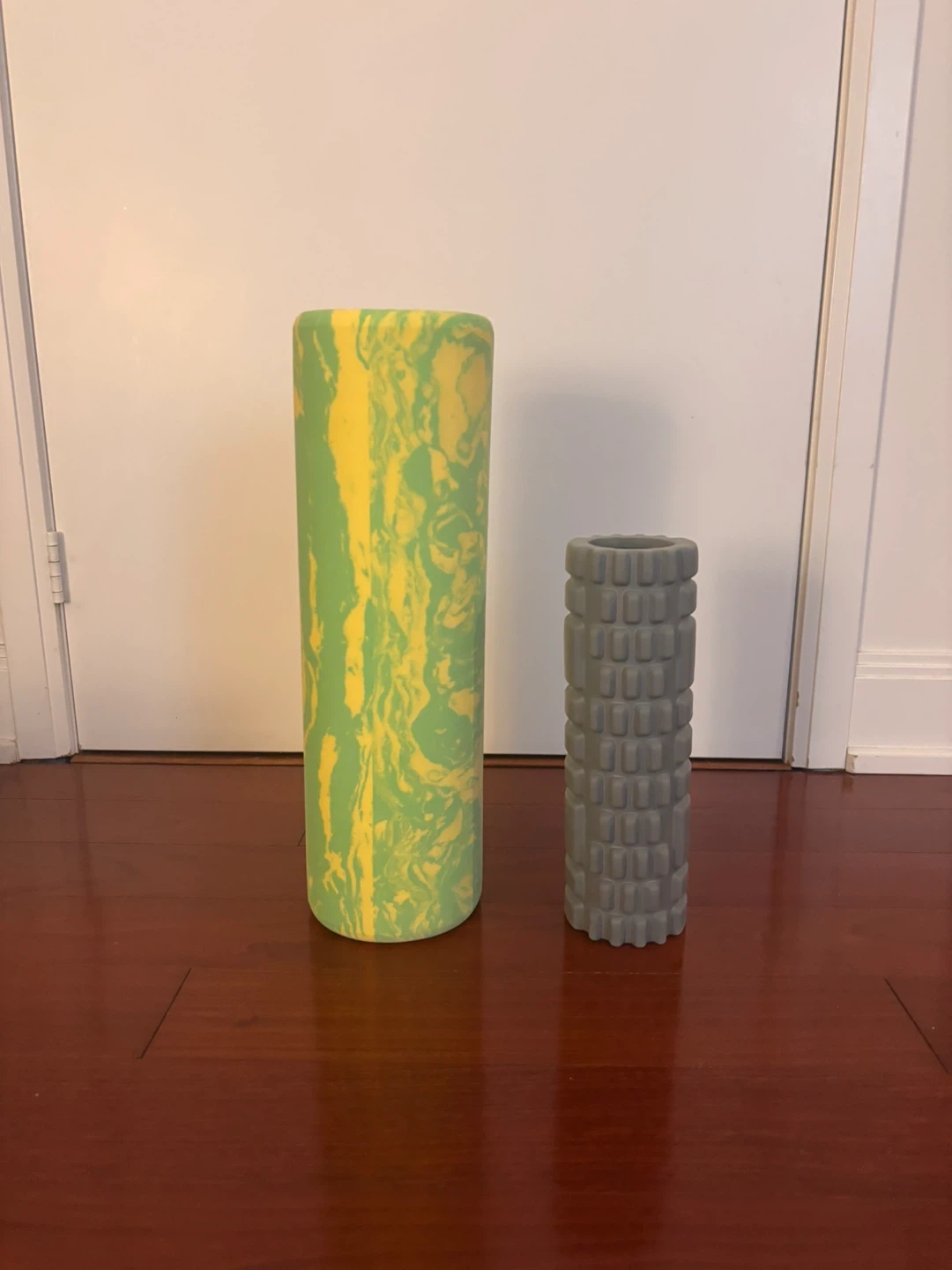 Giving away two foam rollers. One is softer and smooth, other is textured and firm. Green one has small dent in it.