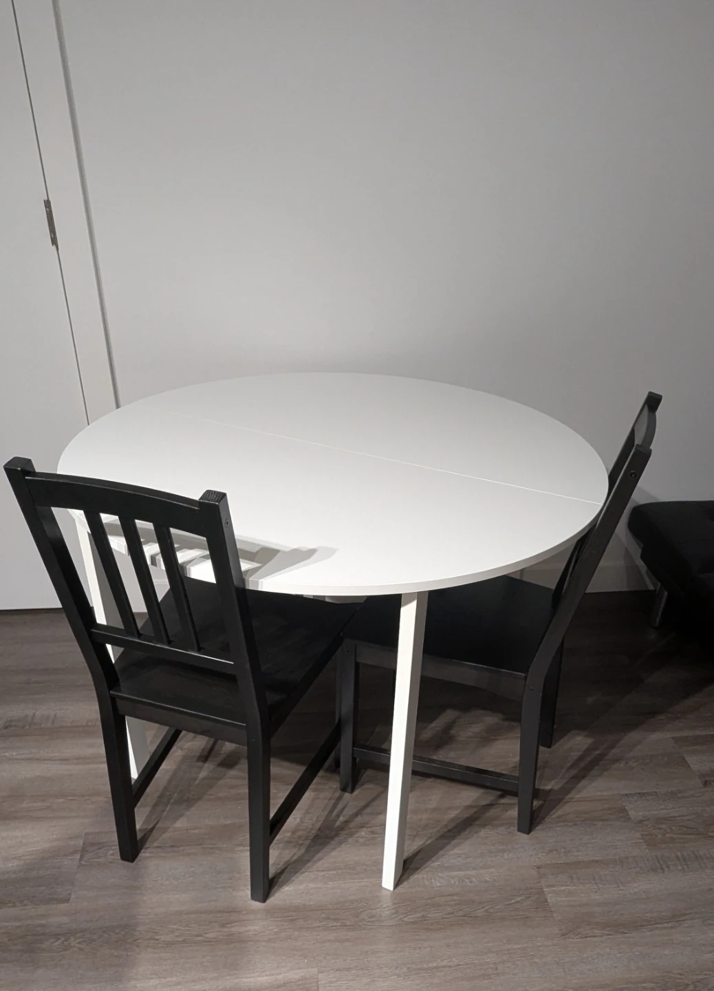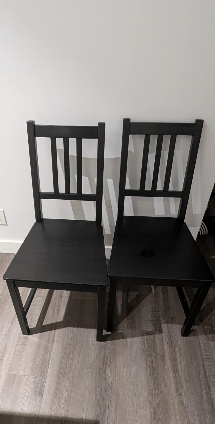 Dining table with 2 chairs made of wood. Only 2 months old and used by 1 person in a pet free and smoke free home. Pick up only in downtown. Selling because I am moving.