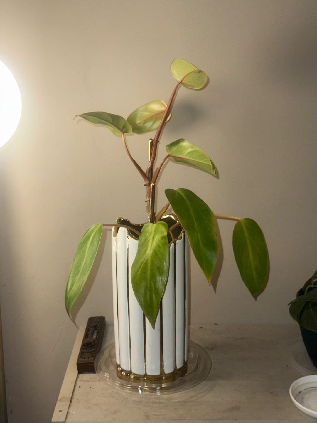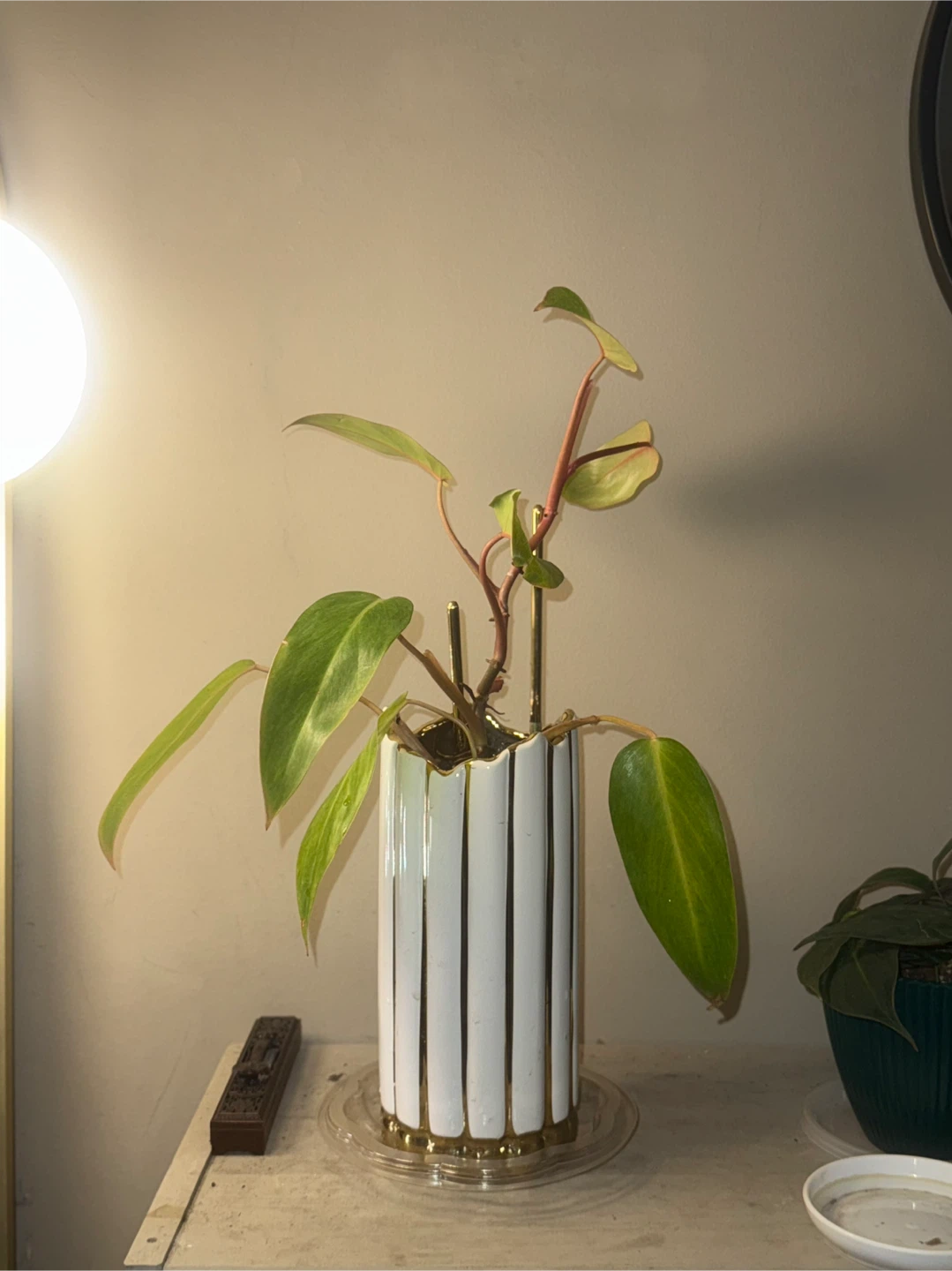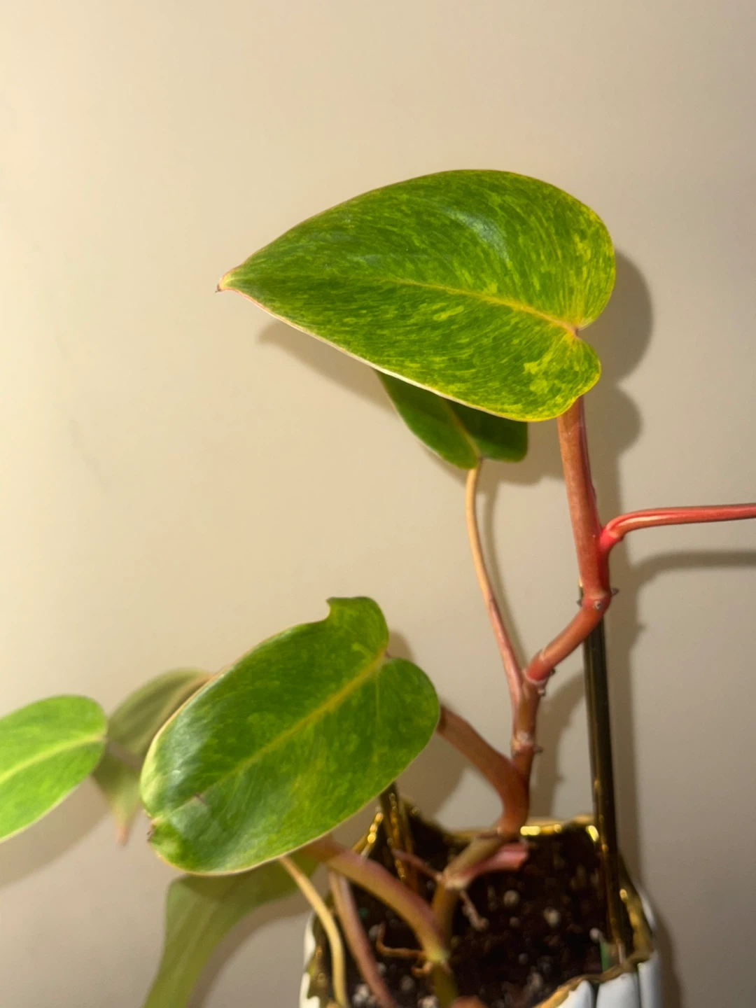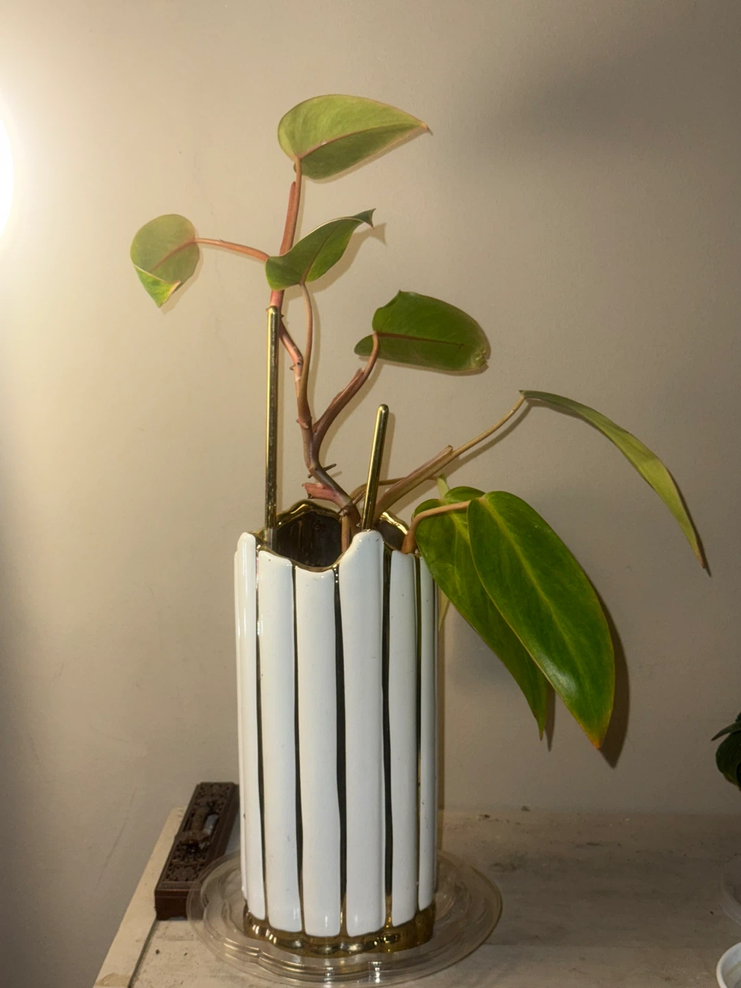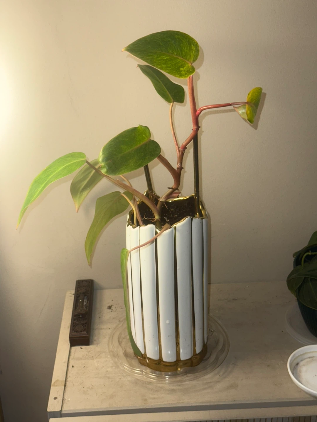 ‘Painted Lady’ Philodendron Plant in White & Gold Vase