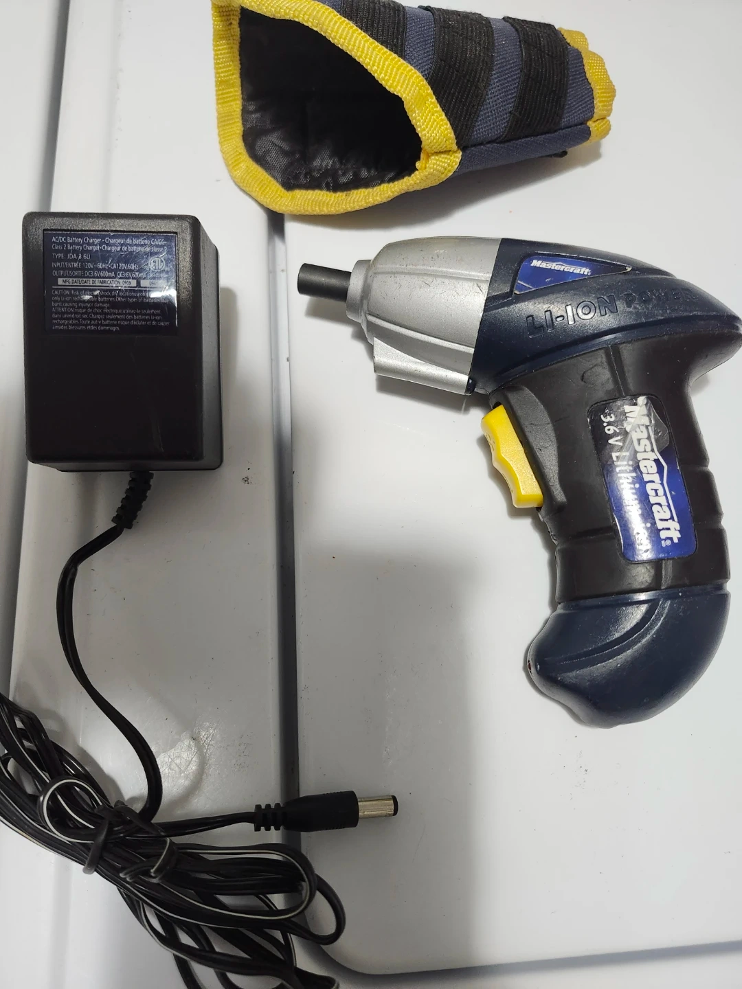 Selling a Mastercraft 3.6V Li-Ion cordless screwdriver in good condition. Comes with the charger and a carrying case to keep everything together. Perfect for small projects around the house!