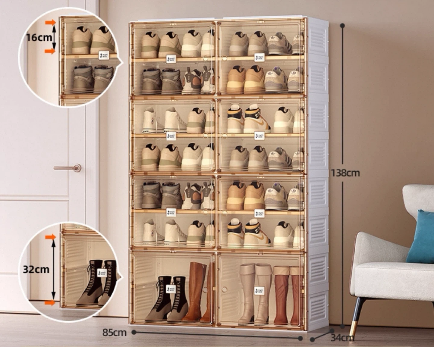 Declutter your entryway with this shoe storage box organizer! It measures 138cm in height, 85cm in width, and 34cm in depth, providing ample space for all your footwear. Each compartment is designed to keep your shoes neatly organized and easily accessible. Perfect for any home!