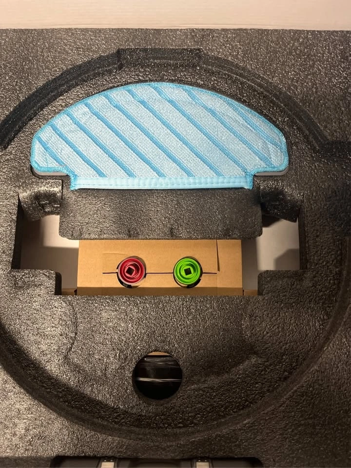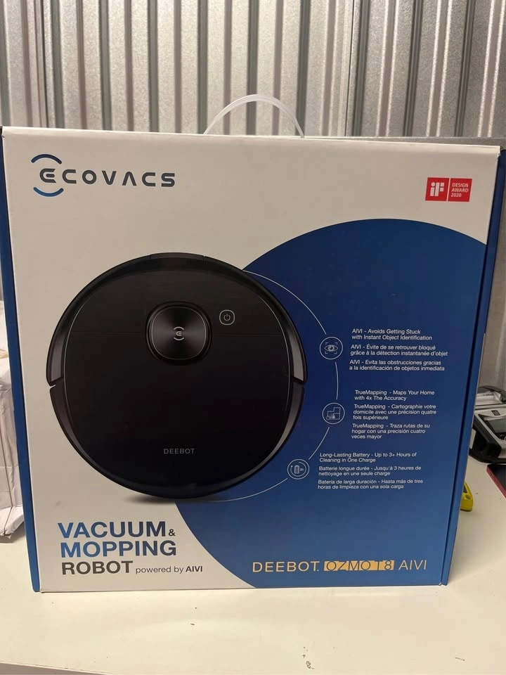 What's in the box: 1 x DEEBOT OZMO T8 AIVI Robot, 1 x charging dock, 2 x bonus replacement side brushes, 1 x bonus replacement high-efficiency air filter, 1 x washable mopping pad, 5 x disposable mopping pads, 1 x instruction manual.