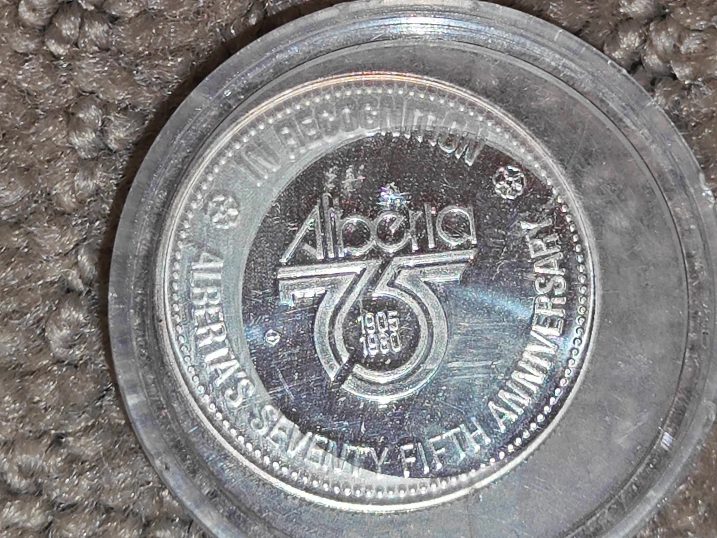 * Design: Features the official Alberta Coat of Arms on the obverse and the Alberta 75 logo on the reverse.