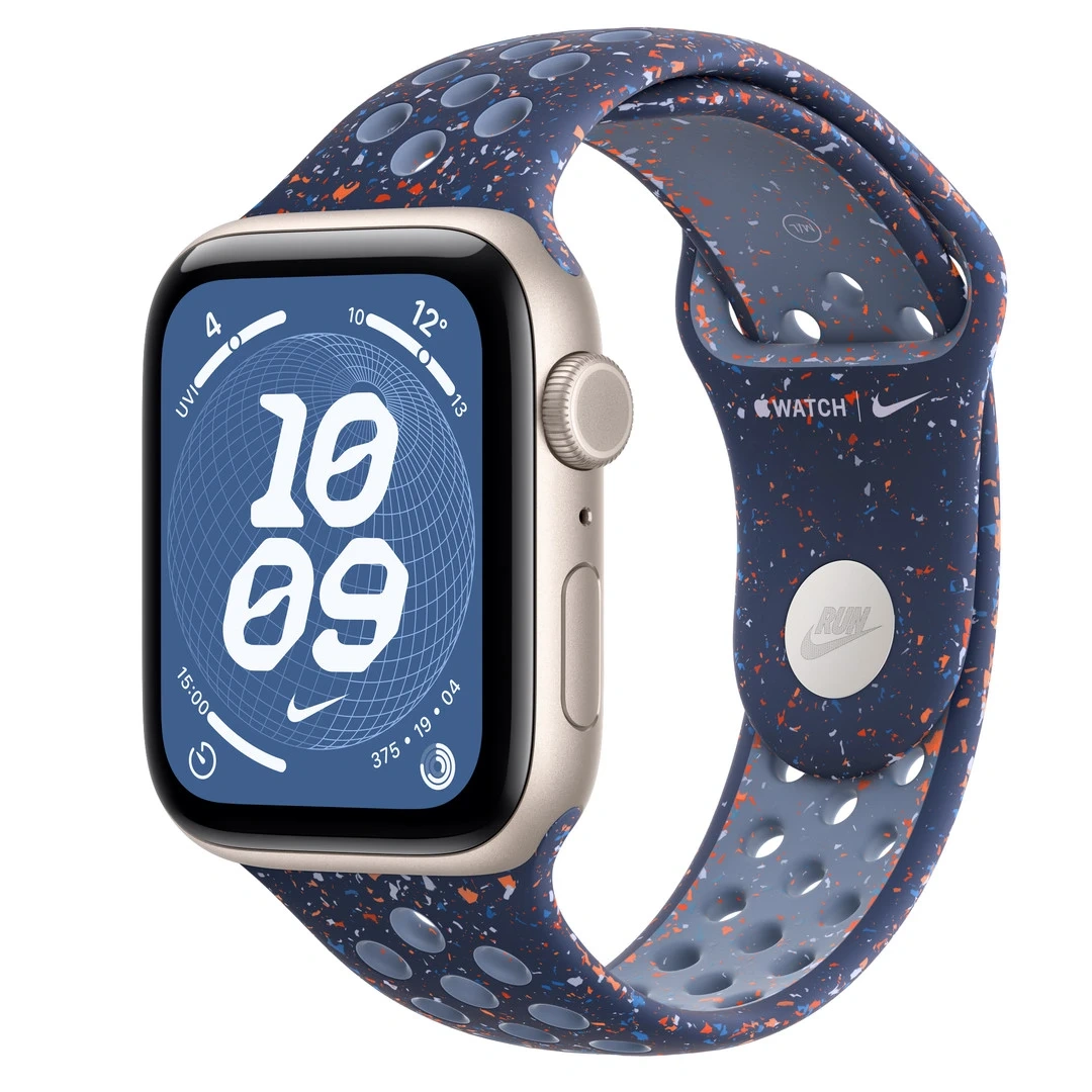 Apple Watch SE 3 GPS + Cellular, 44mm Starlight Aluminium Case with Blue Ribbon Nike Sport Band - S/M