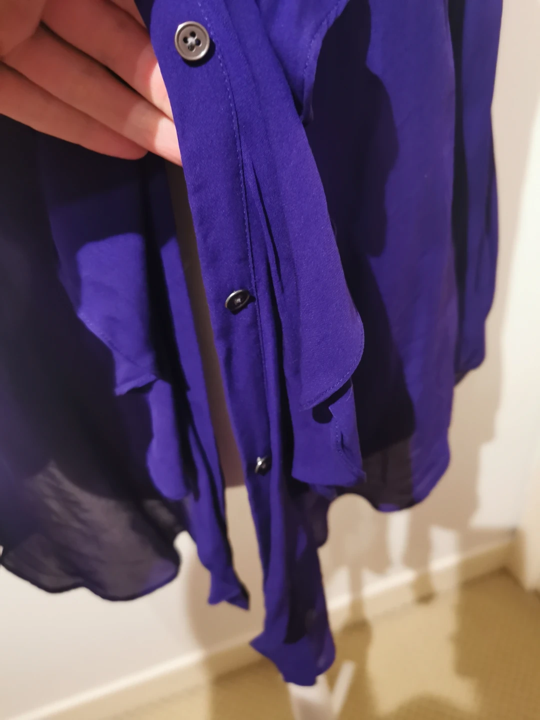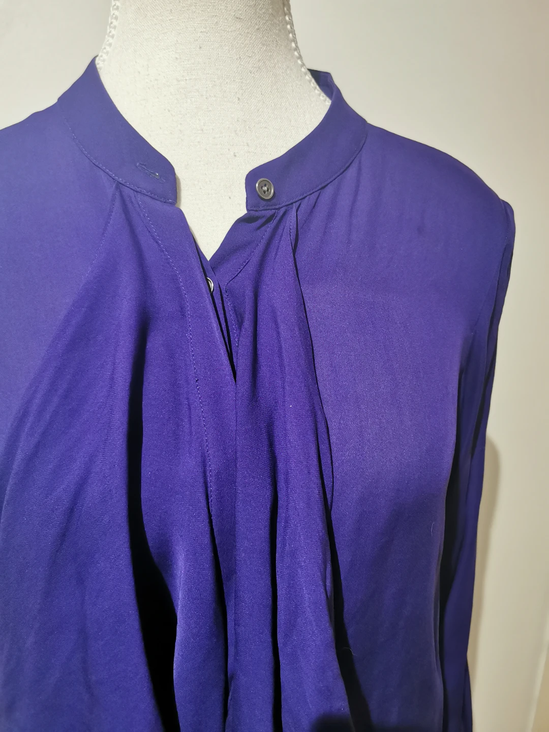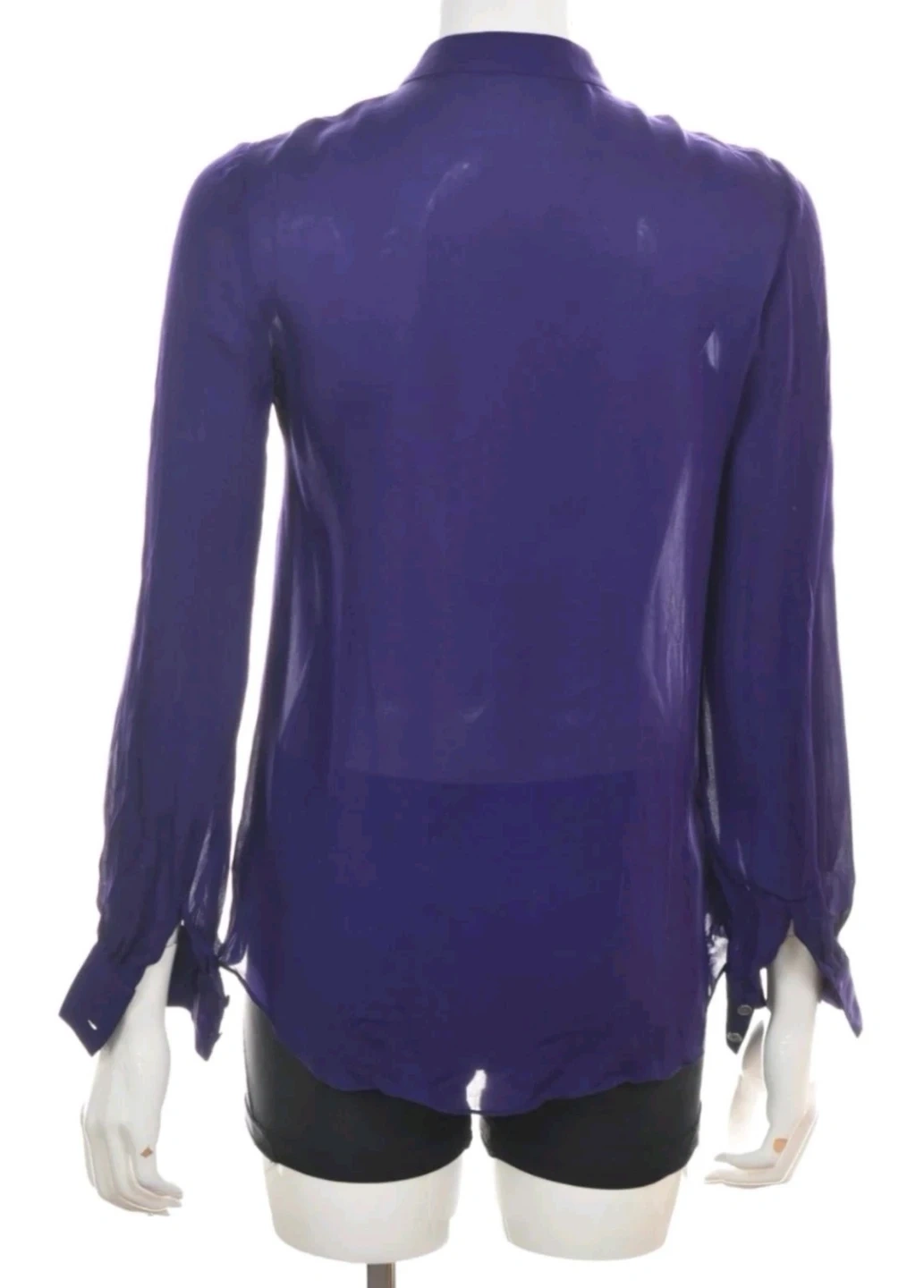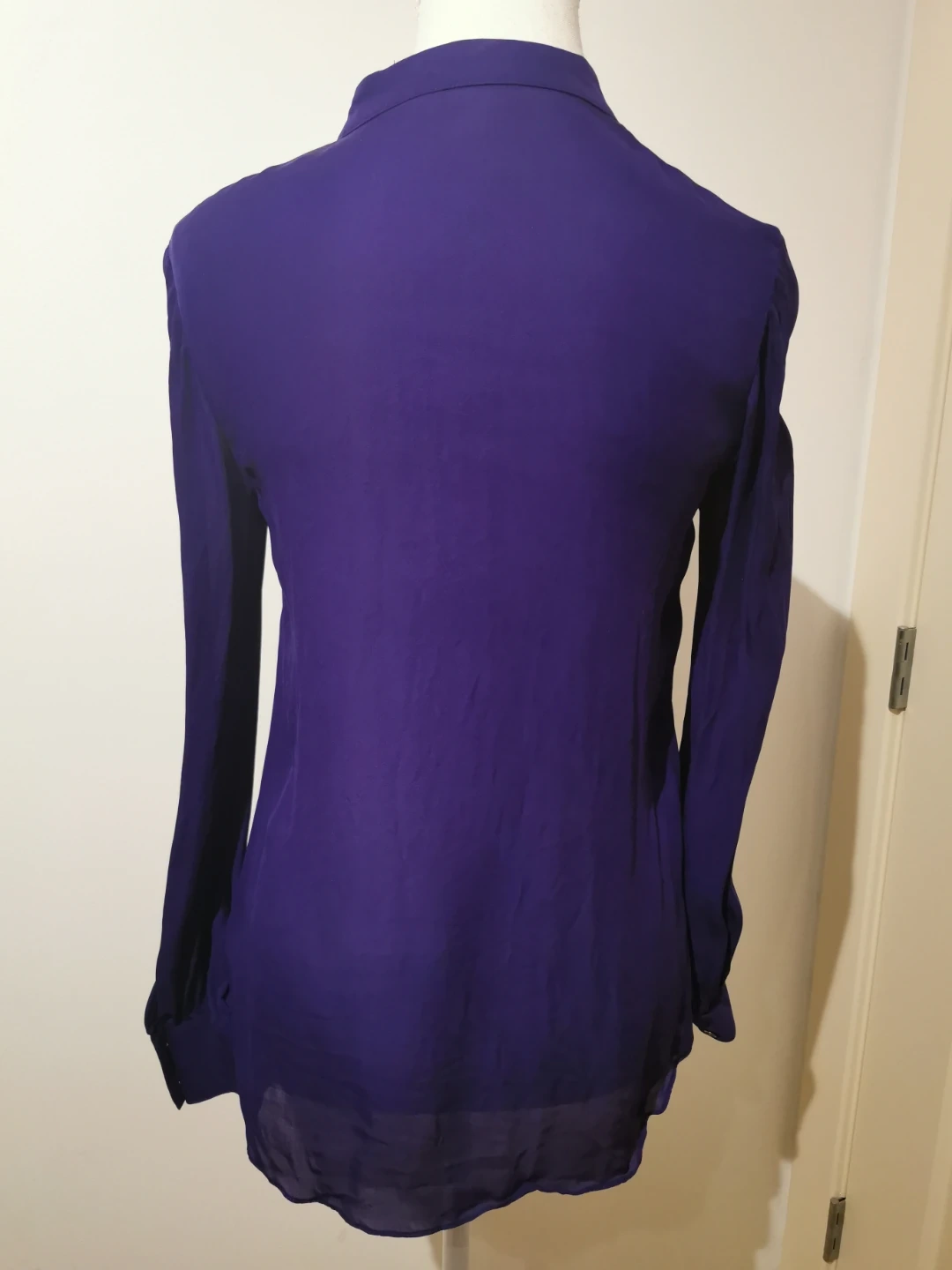 This is a lovely purple blouse with long sleeves and button details. It's in great condition and ready for a new wardrobe!