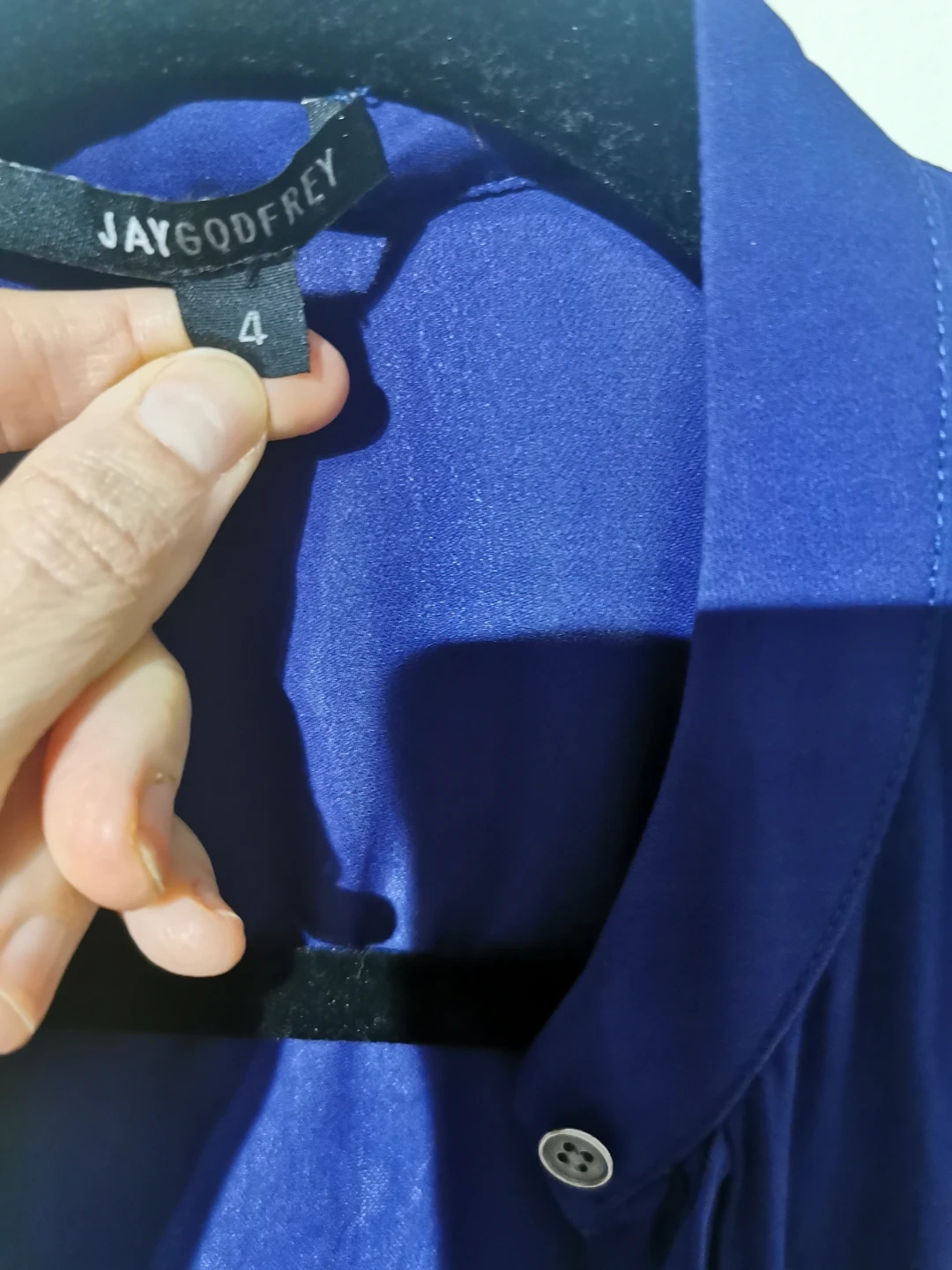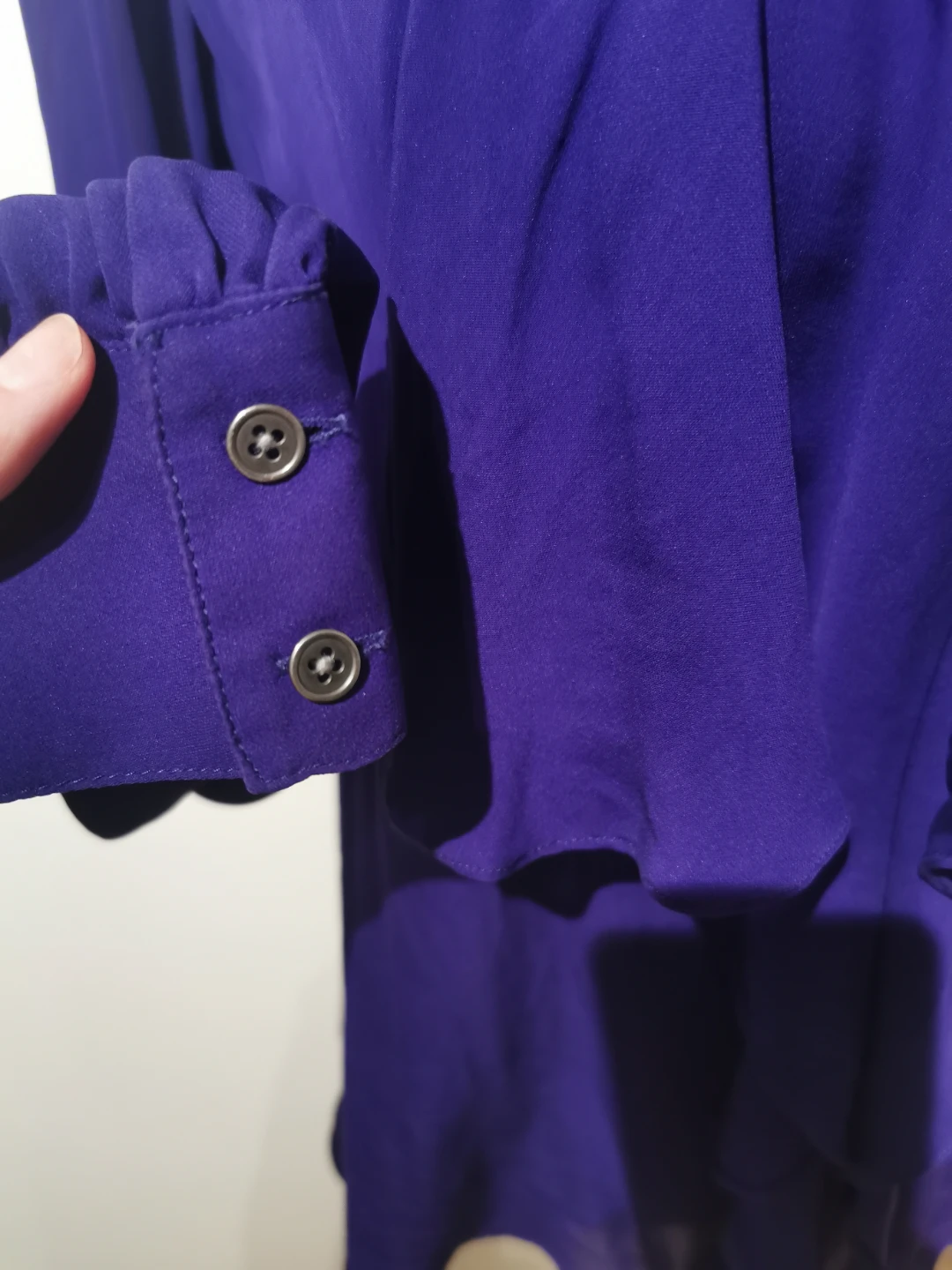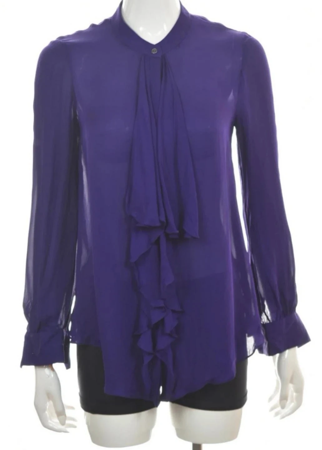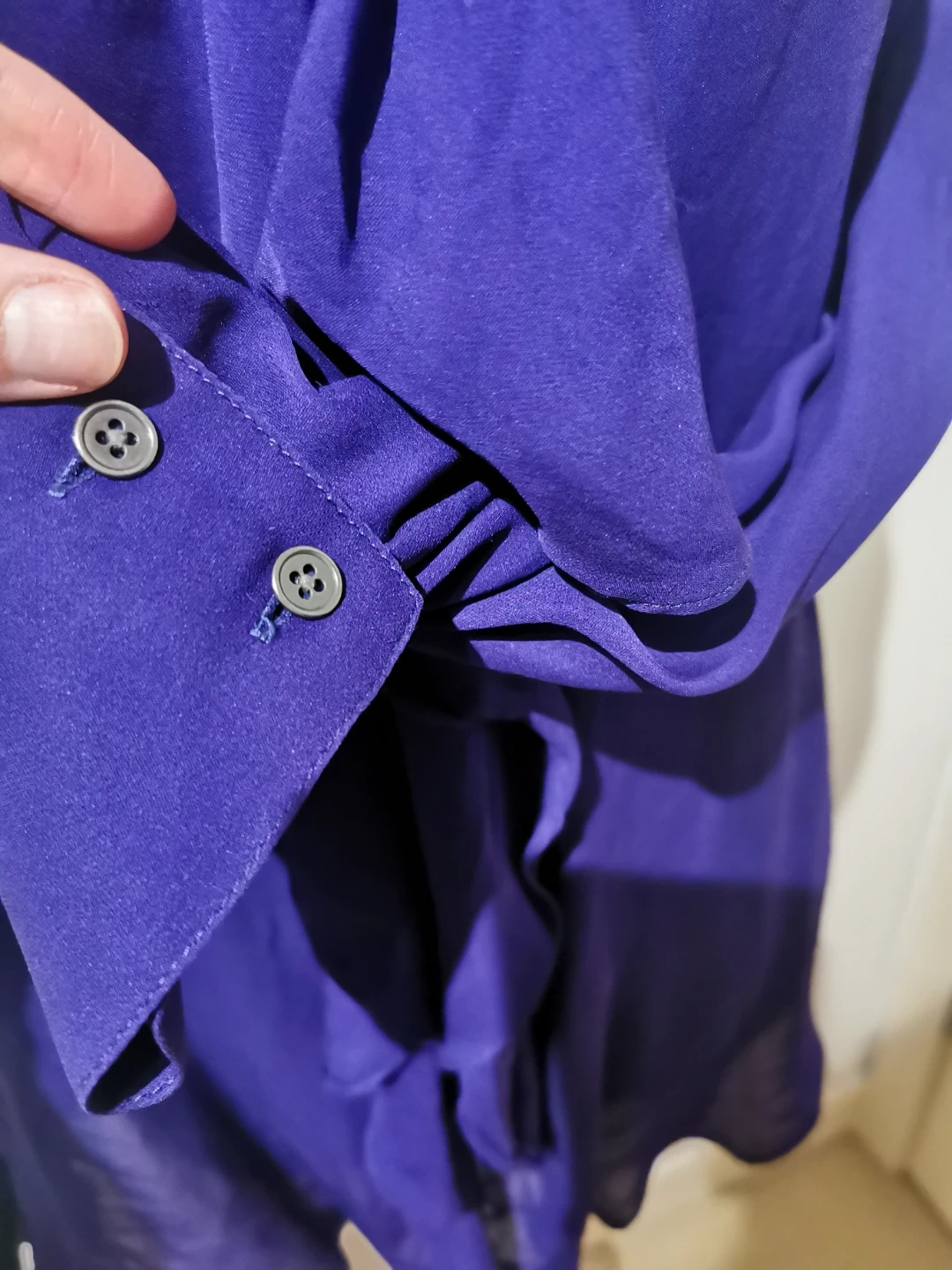 This is a lovely purple blouse with long sleeves and button details. It's in great condition and ready for a new wardrobe!