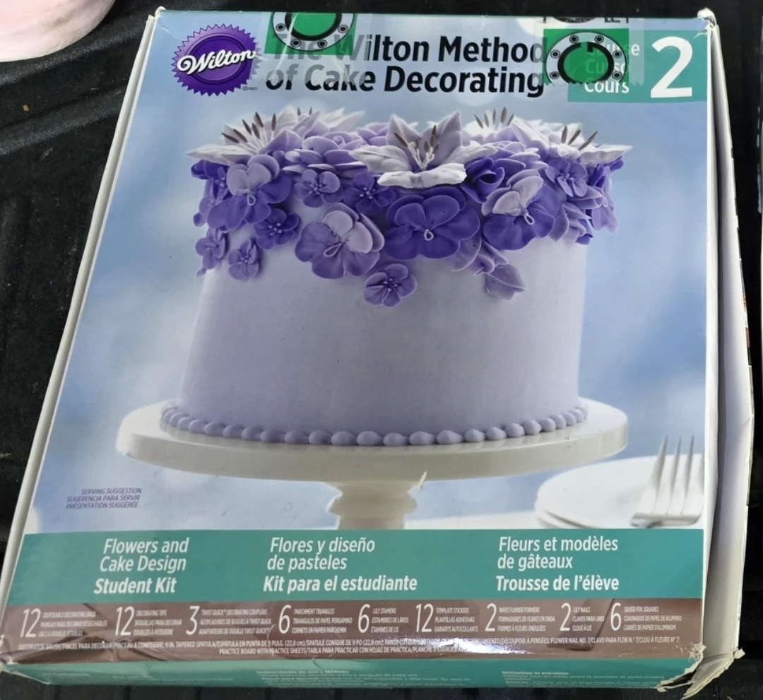 Get started with cake decorating using the Wilton Flowers and Cake Design Student Kit! This kit includes decorating tips, decorating couplers, parchment triangles, lily stamens, template stickers, wave flower formers, lily nails, and silver foil squares. It also comes with a practice board and practice sheets to help you perfect your skills.