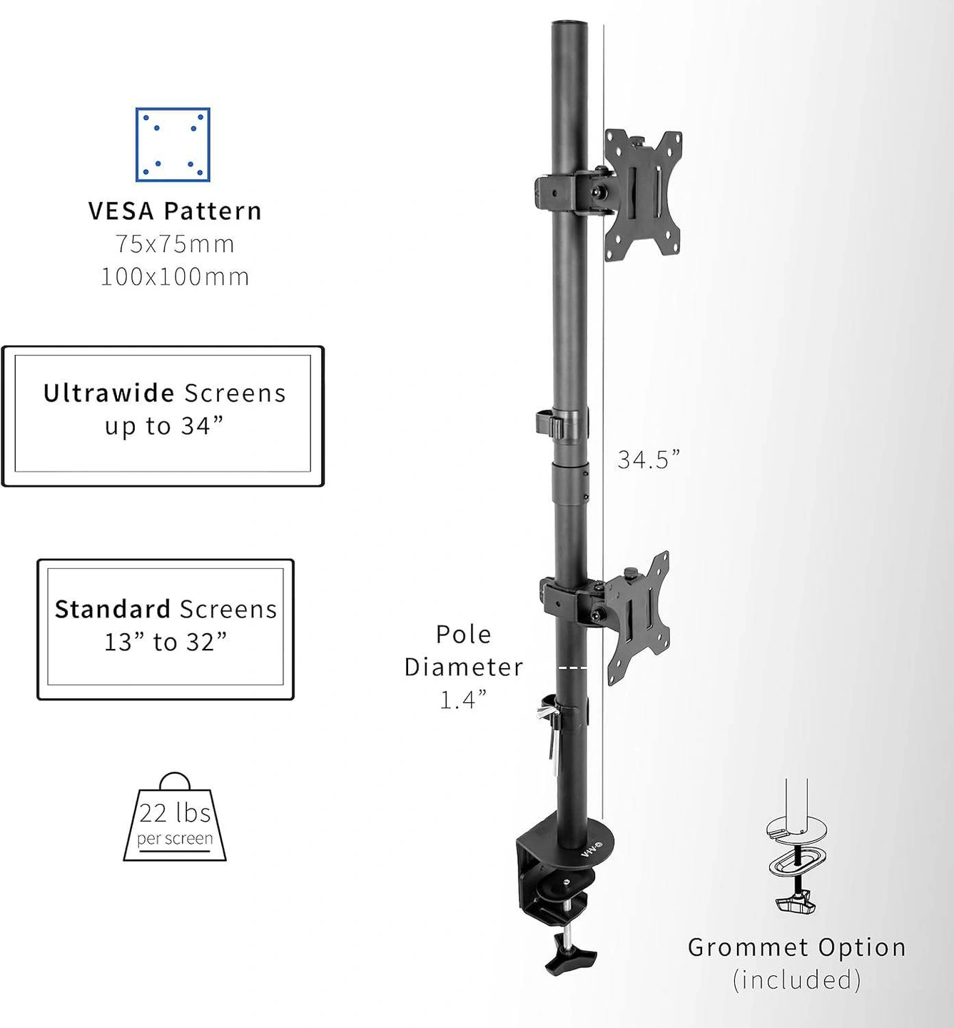 New VIVO Dual Vertically Stacked Extra Tall Monitor Desk Mount