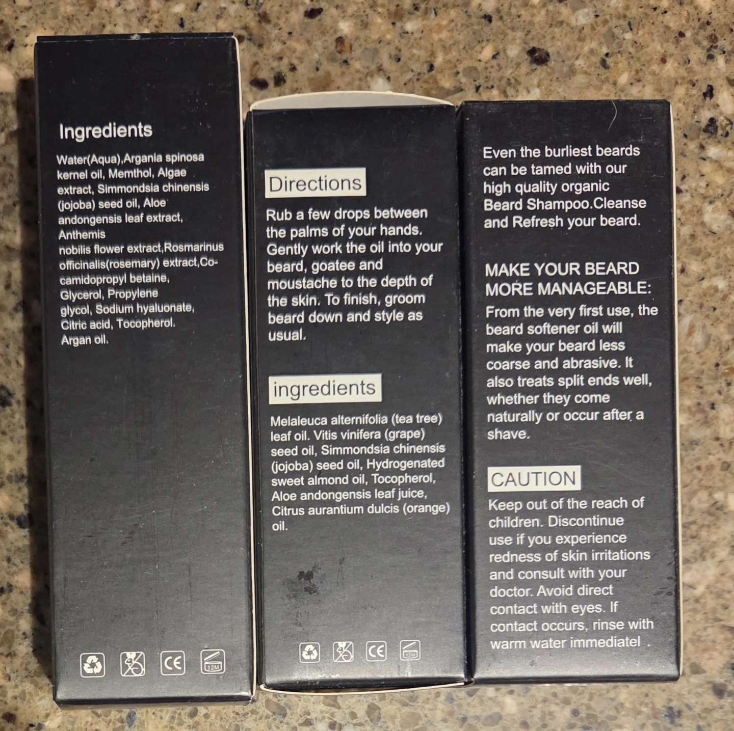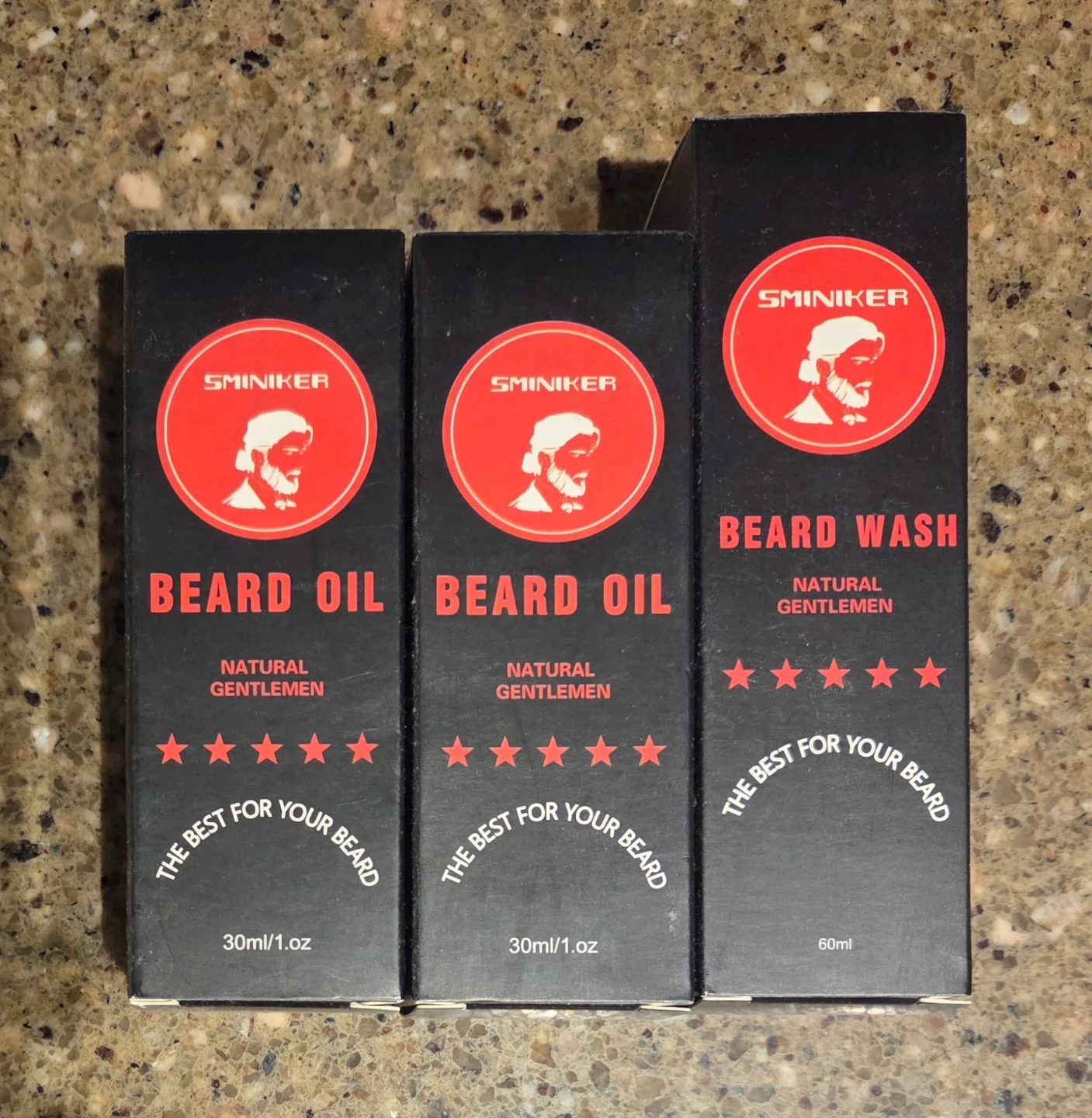 Selling a Sminiker beard care set, including beard oil and beard wash. The beard oil comes in 30ml/1.0z bottles, and the beard wash is 60ml. Perfect for keeping your beard healthy and manageable!