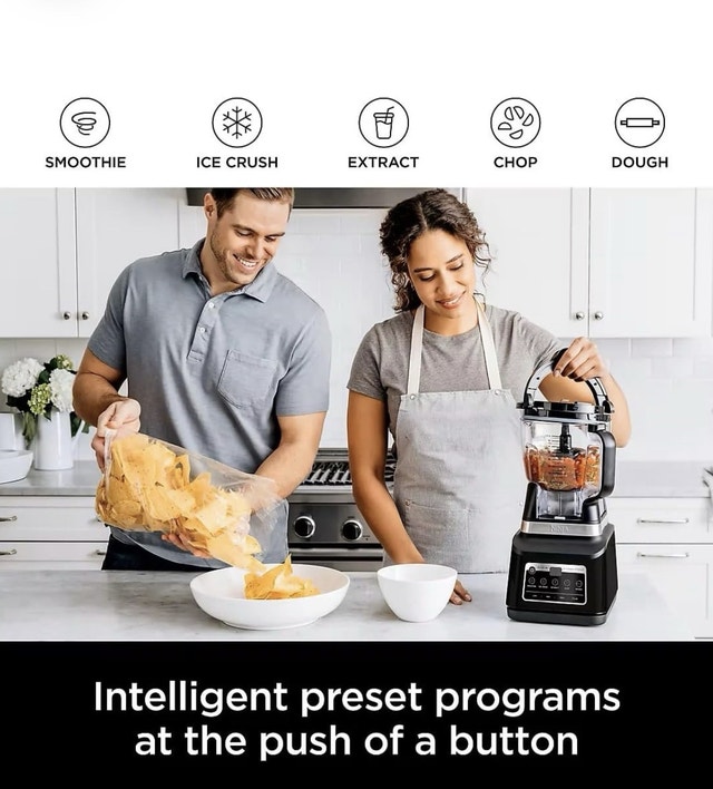 Five preset Auto-iQ programs allow you to create smoothies, frozen drinks, nutrient extractions**, chopped mixtures, and dough, all at the touch of a button. Contains four blade assemblies: stacked blade assembly, pro extractor blades assembly, chopping blade assembly, and dough blade assembly.