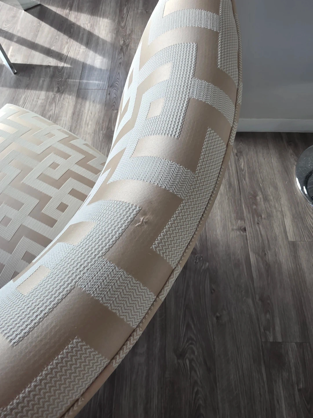 One of the chairs has a small flaw about 3 mm wide on the top of the chair back.