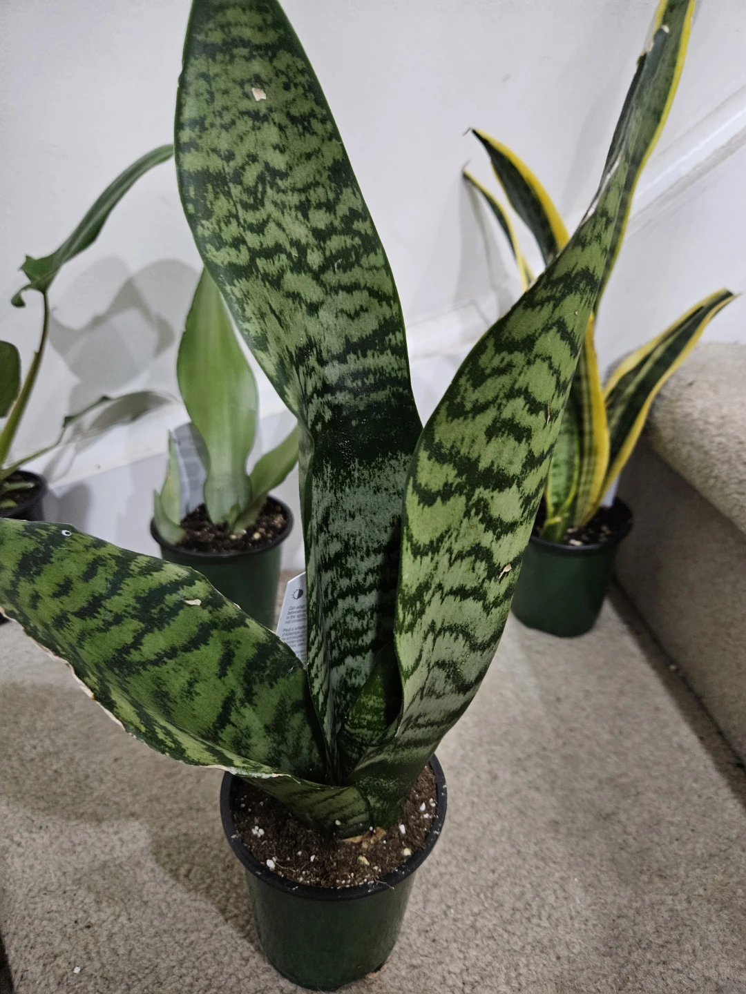 Selling some healthy snake plants, also known as Sansevieria trifasciata, in their pots. They are easy to care for and great for purifying the air in your home. Perfect for adding a touch of greenery to any room!
