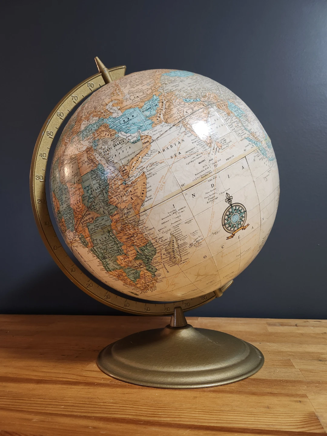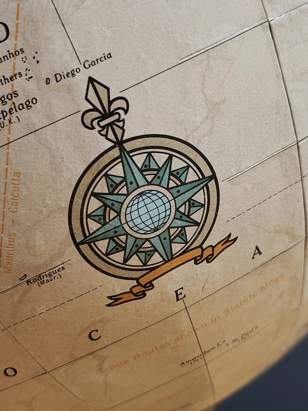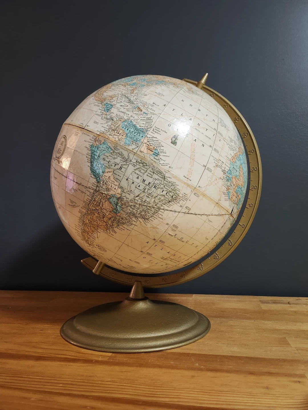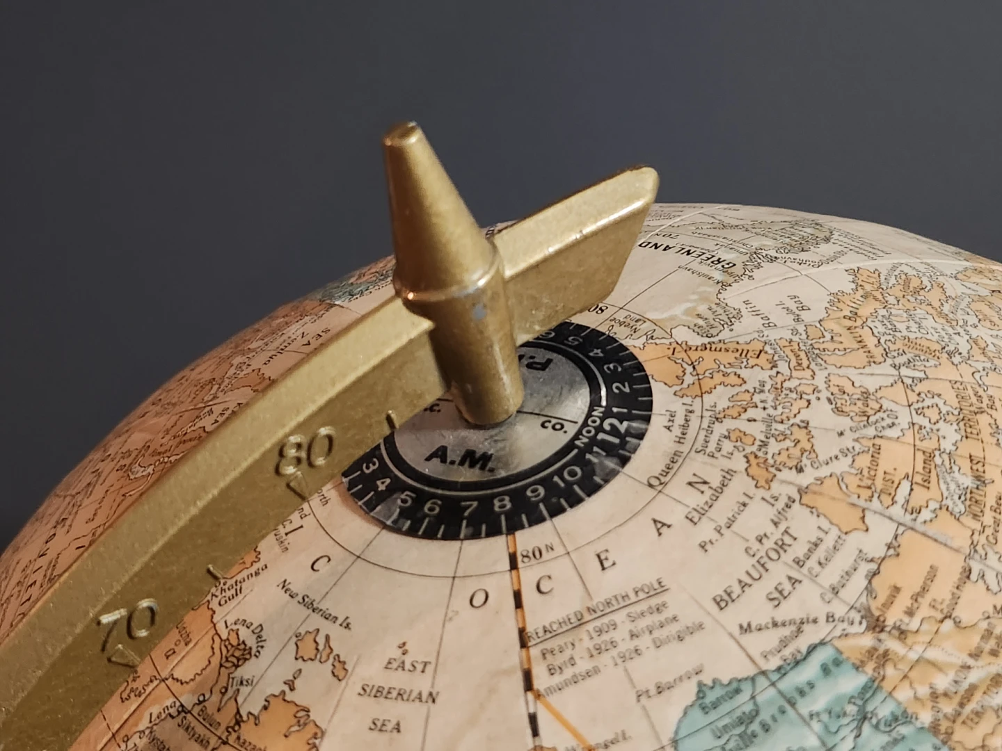 - Cartography: The spellings on the globe conform to the official rulings of the United States Geographic Board, indicating a level of cartographic authority.