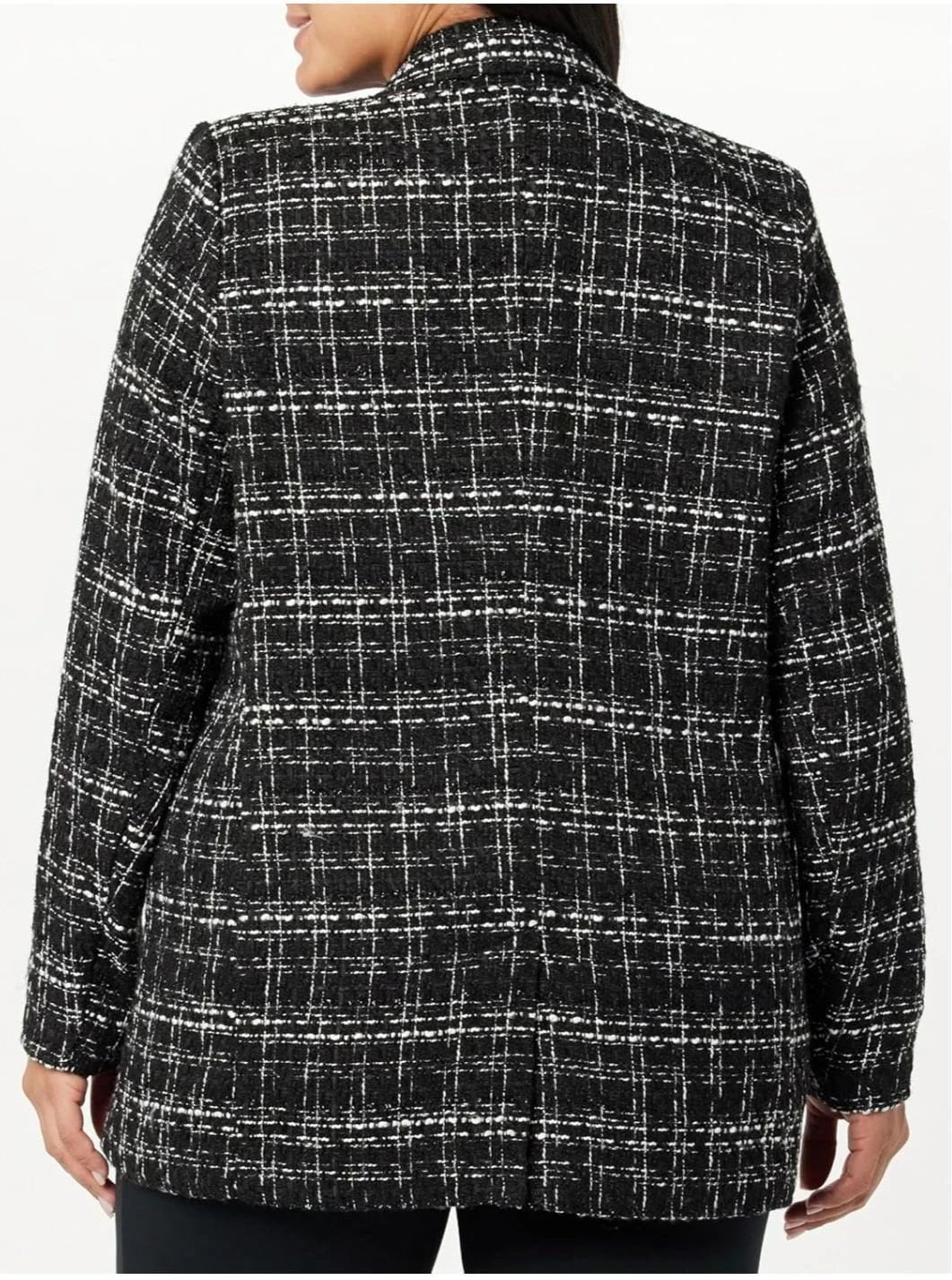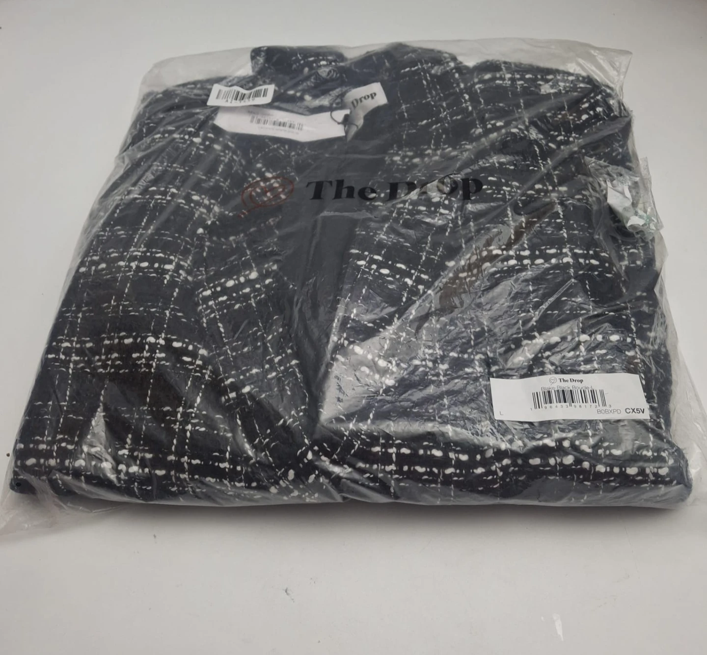 The Drop Blake Long Blazer, Black Bouclé Tweed (Large)