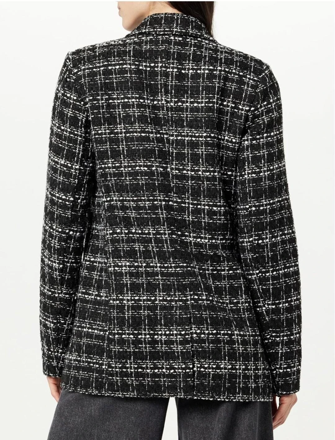 • Textured black bouclé / tweed finish
