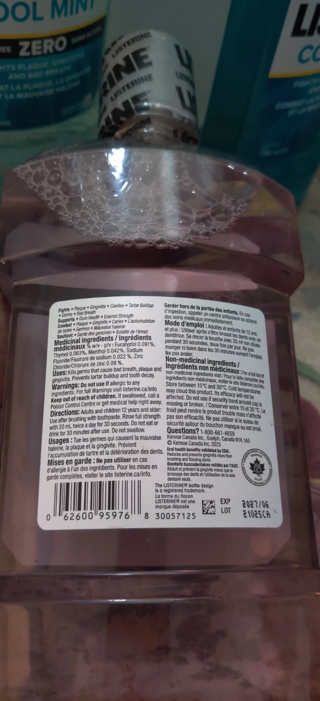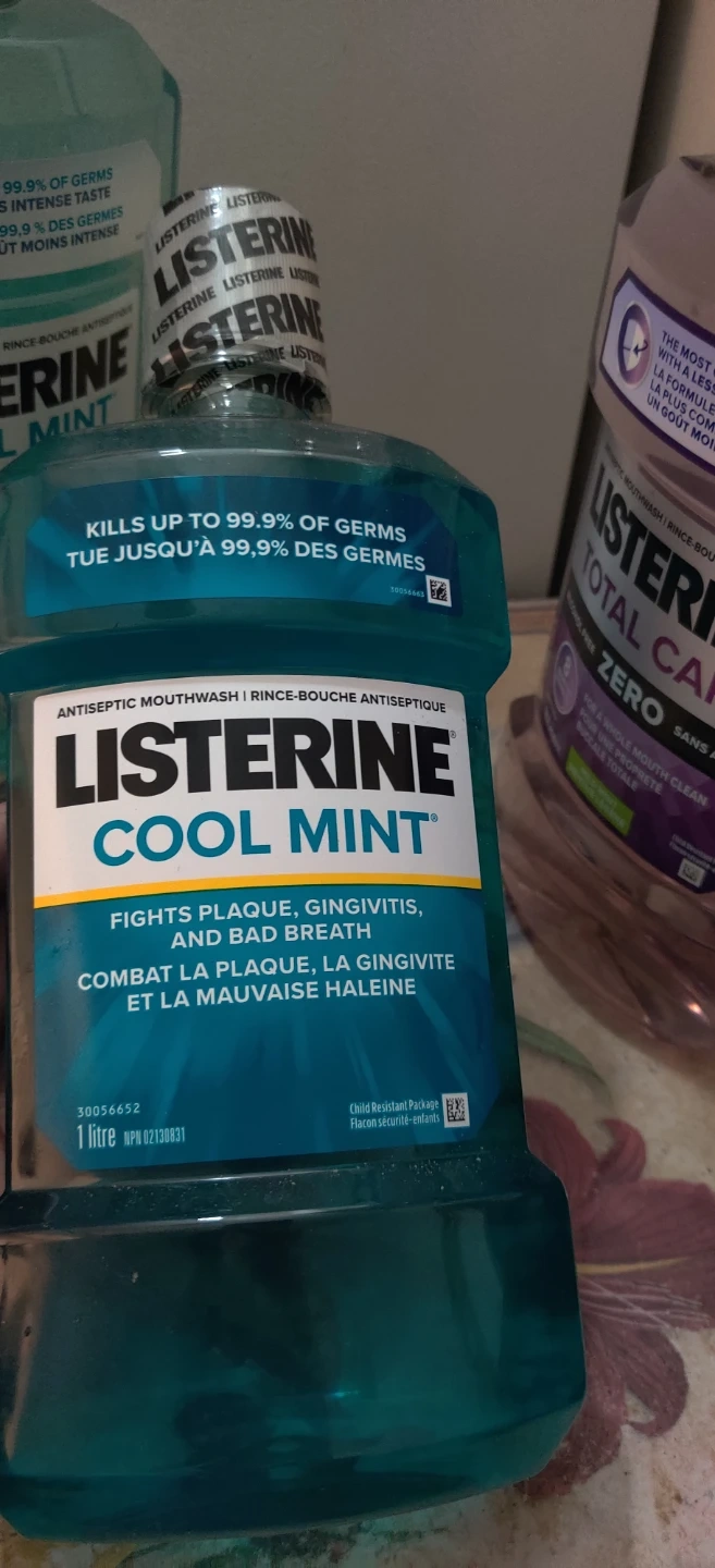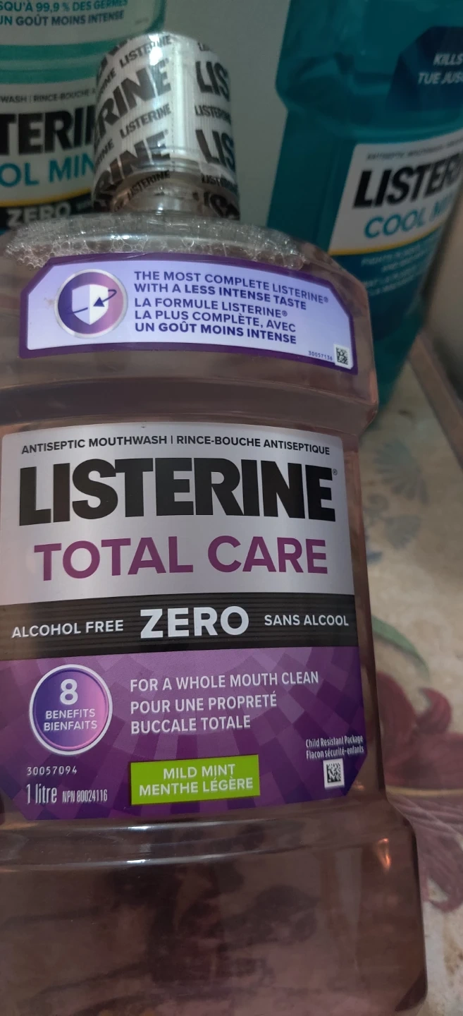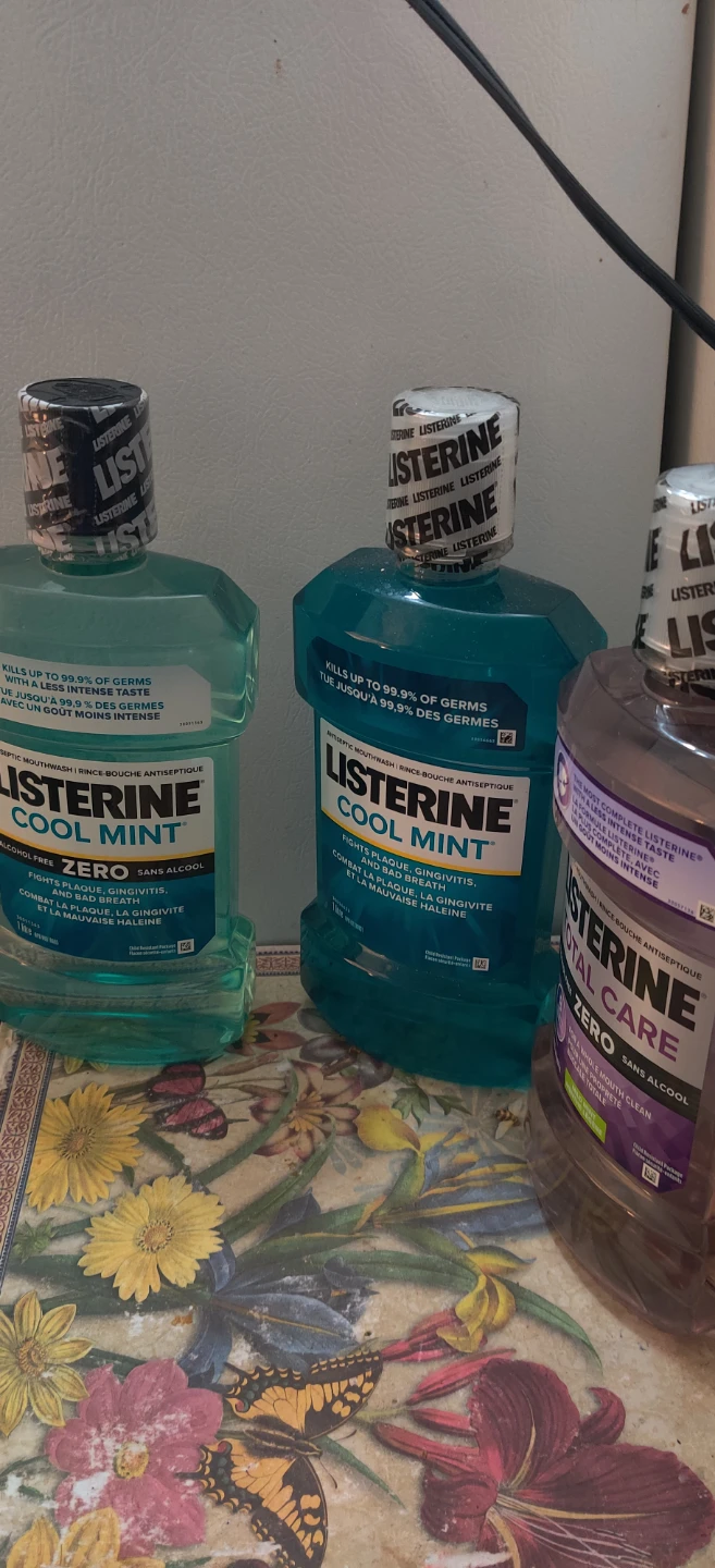 I have3 Listerine mouthwash available. There's a Total Care Zero and a Cool Mint Zero, both in 1-litre bottles. The Total Care Zero has a mild mint flavour and the expiry date is 2027 June.