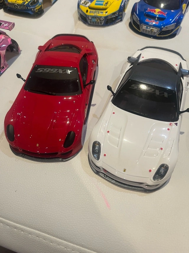 All these cars I bought to put on display in my office. They were very expensive at $120+ for each car, and they are very good looking cars that haven’t been used. I’m selling them because they take up space and I’d rather have someone else use them for racing. Each car is $65 each because they are untouched. On the last slide are some bodies I actually used on my Mini-z’s so they are $40 each.