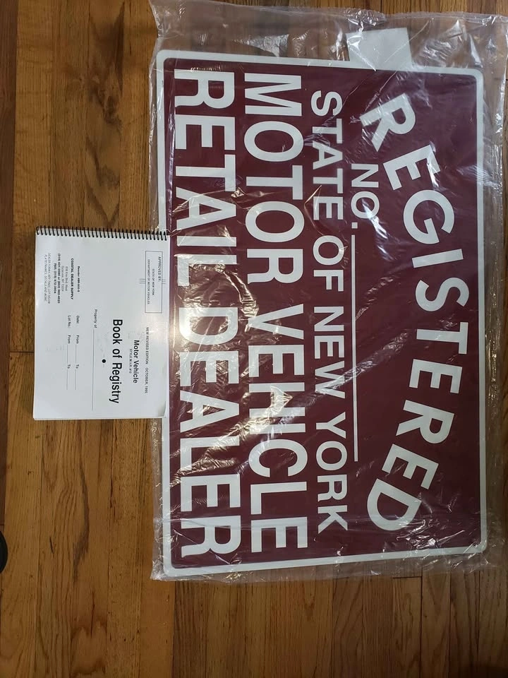 NYS Motor Vehicle Retail Dealer Registry Book is still available. Purchased a few months ago to use for a used car business but going a different route now so I dont have any use for the book. Asking $60 or best offer.