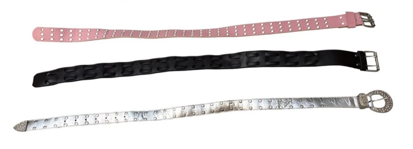 β’ π Pink Grommet Belt β Rows of silver eyelets and a sleek buckle for a modern, Y2K-inspired pop