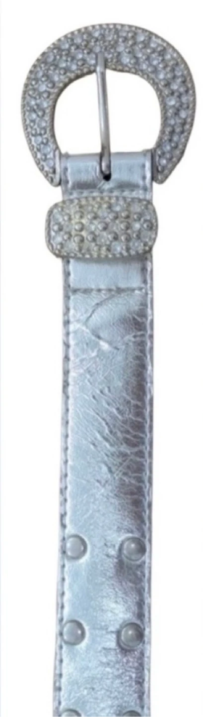β’ π Metallic Silver Belt β Textured finish with stud accents and a rhinestone-encrusted buckle β pure glam