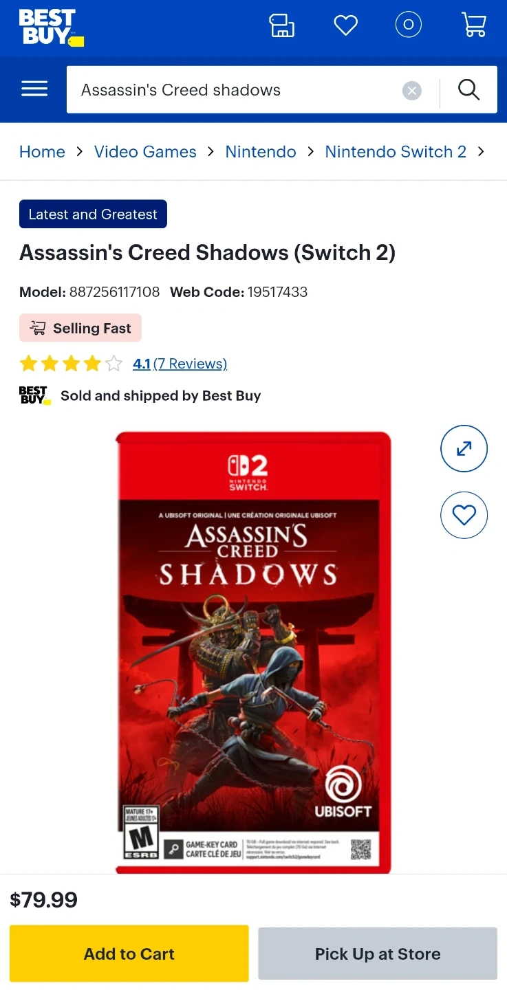 Selling a brand new, sealed copy of Assassin's Creed Shadows for the Nintendo Switch 2! Get ready for a new creed rising over Japan! $79.99+tax=$90 in stores.