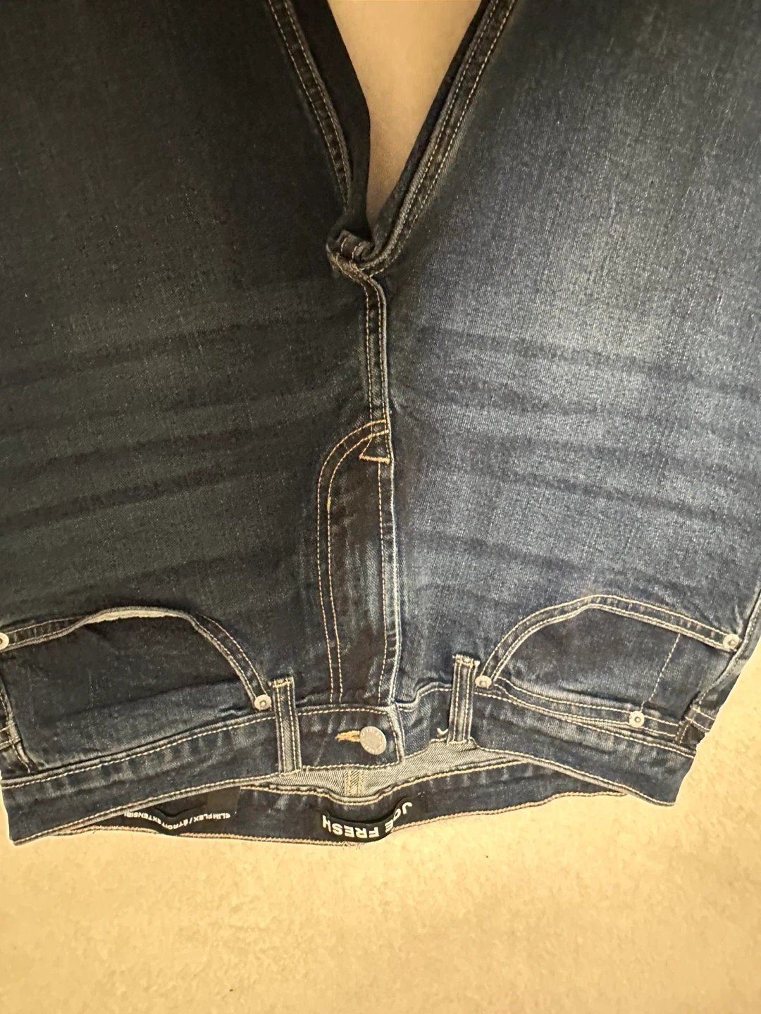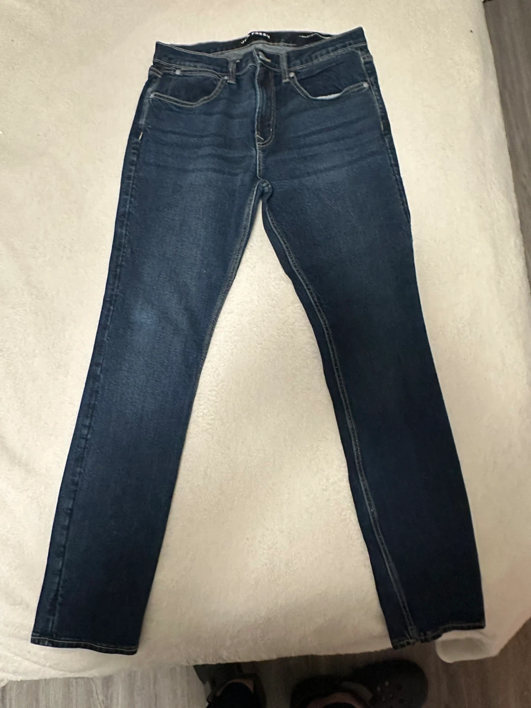 Selling a pair of Joe Fresh Slim Flex jeans in size 33/32. These jeans are a nice dark wash and in new condition! They're a slim fit, perfect for everyday wear
