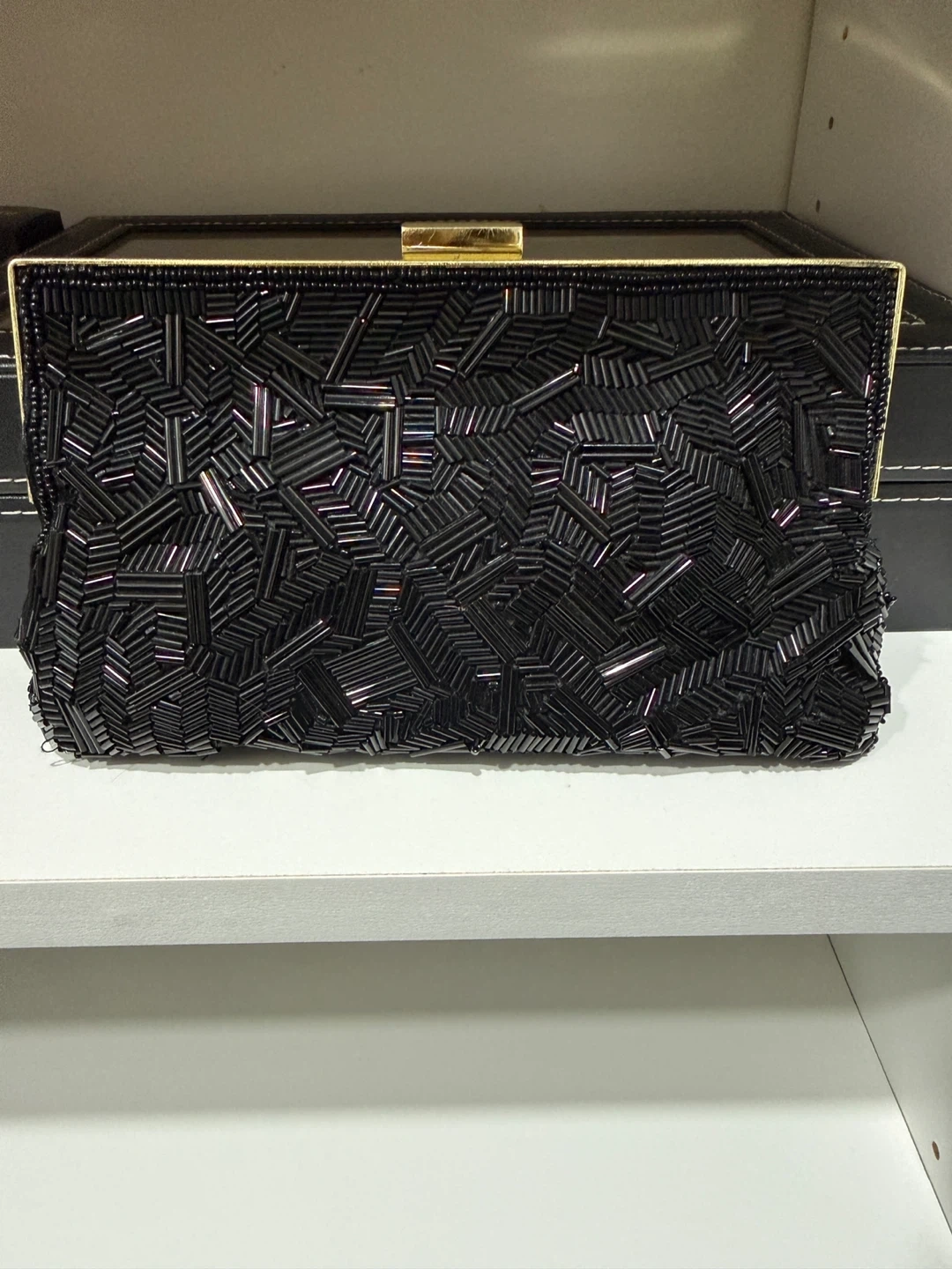 Selling a lovely black beaded clutch from INC International Concepts. It's in great condition and perfect for a night out or special occasion. The interior is lined with a silky material and has a small pocket. Comes with a delicate chain strap.