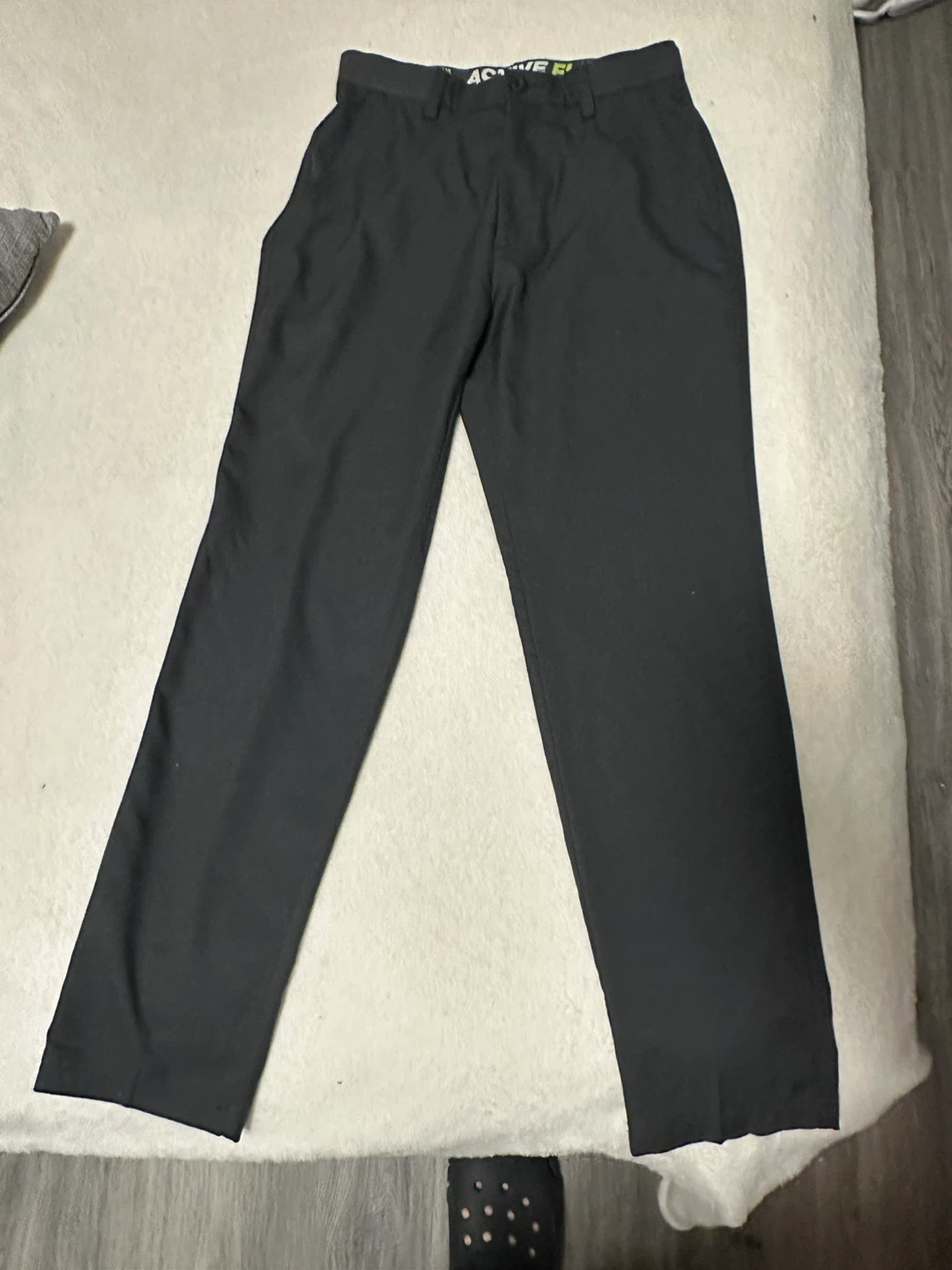 Selling a pair of Haggar Active Flex Tech Pants in size small. They are black and made of 100% polyester. These pants are in great condition and ready for a new owner!