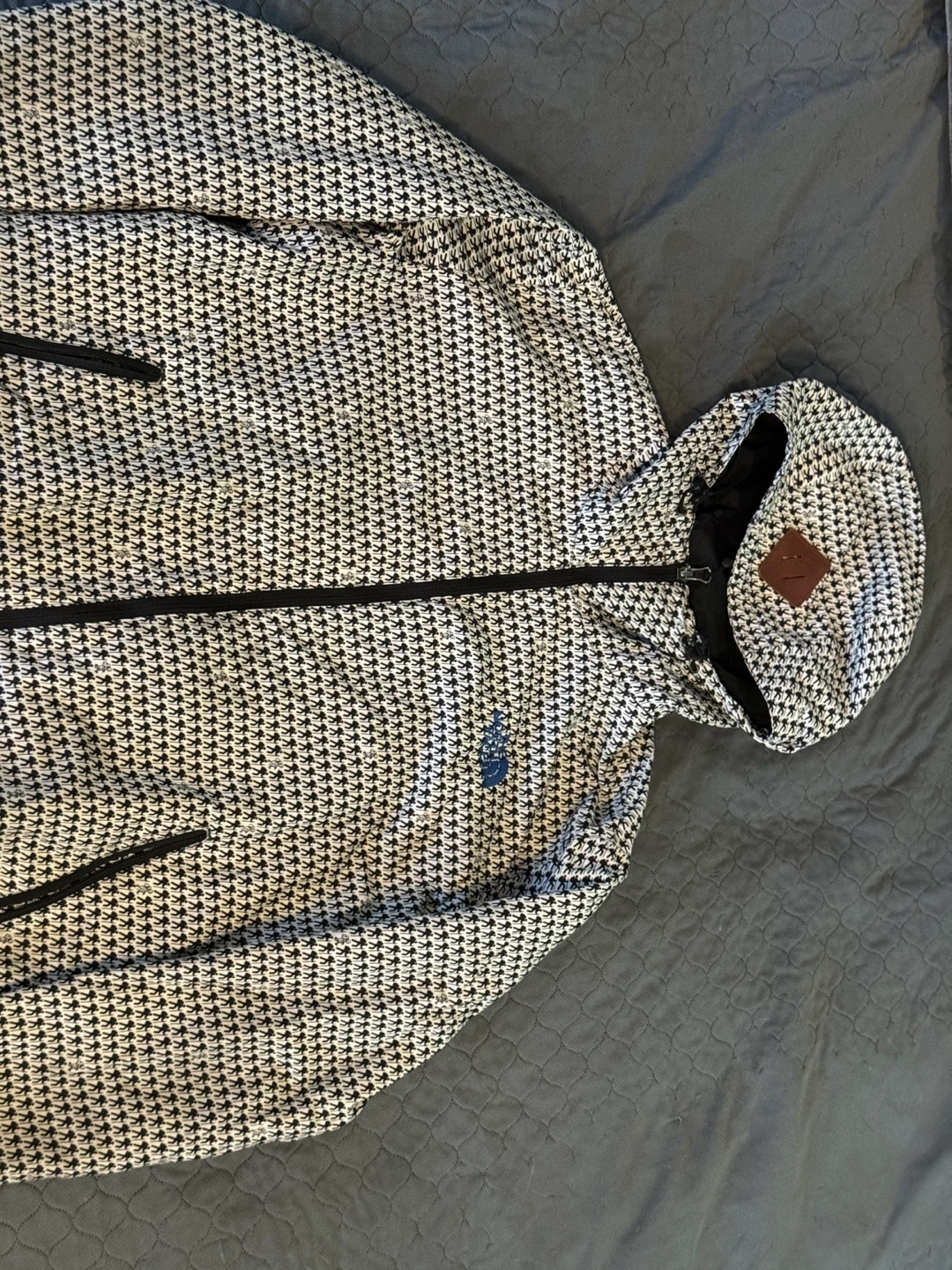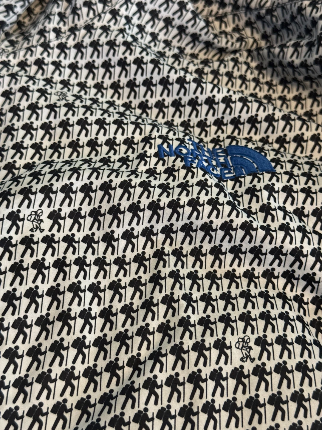 Here's a The North Face jacket with a unique print! It's in great condition and ready for a new owner. Perfect for staying stylish and warm on your outdoor adventures