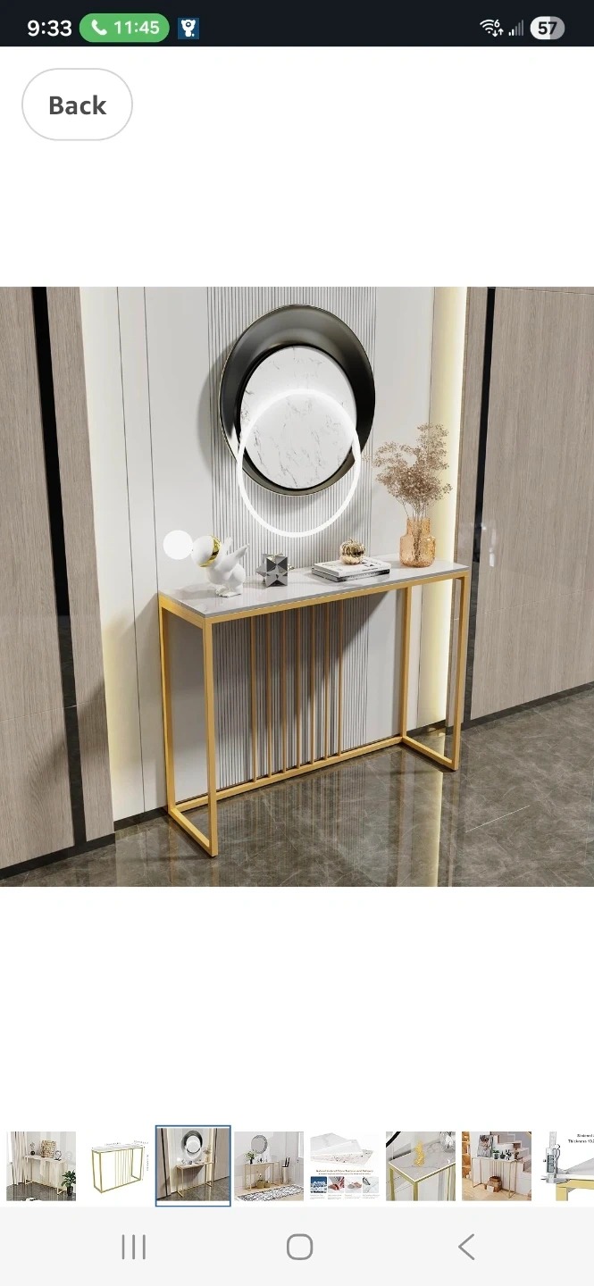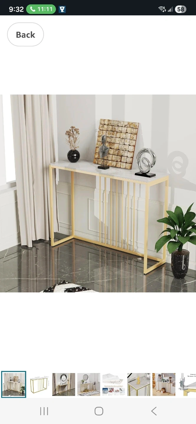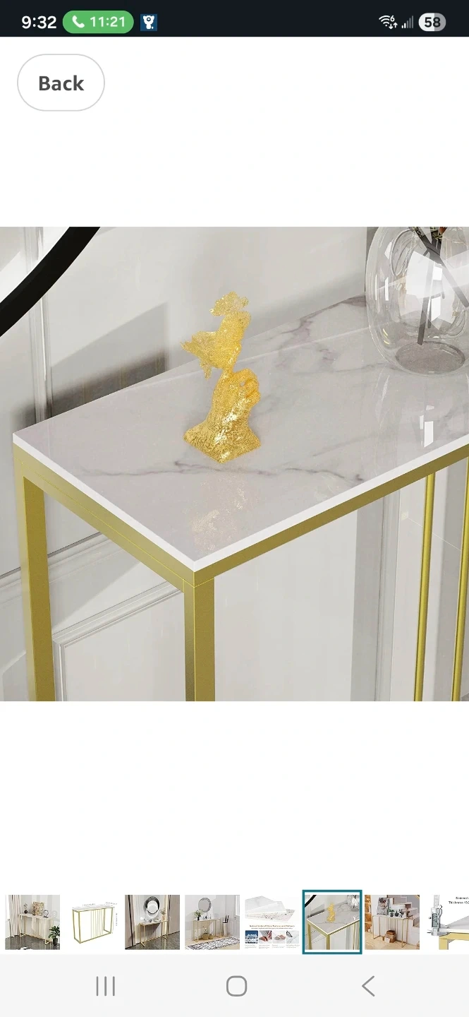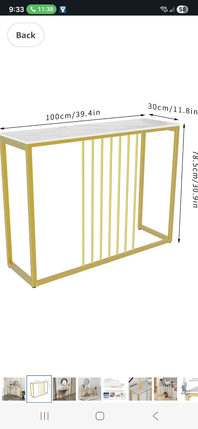 Here's a beautiful console table with a gold frame and marble top! The dimensions are approximately 39.4 inches in length, 11.8 inches in width, and 30.9 inches in height. The sintered stone thickness is 10.70mm. It's a stylish piece that would look great in any entryway or living room