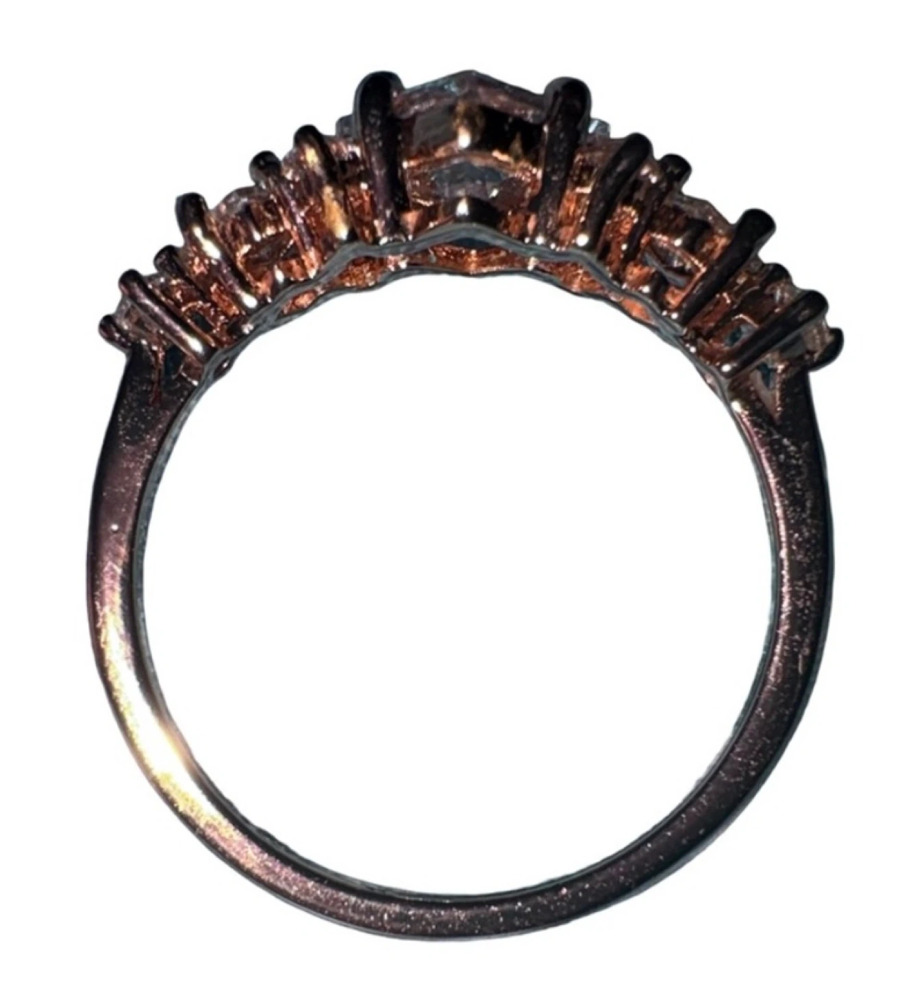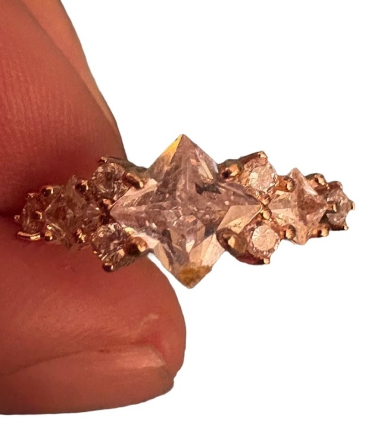 Unworn rose gold-tone ring revealed from a Charmed Aroma candle. Features a radiant square-cut CZ center stone surrounded by shimmering accents—perfect for stacking, gifting, or adding a touch of glam to your everyday look.