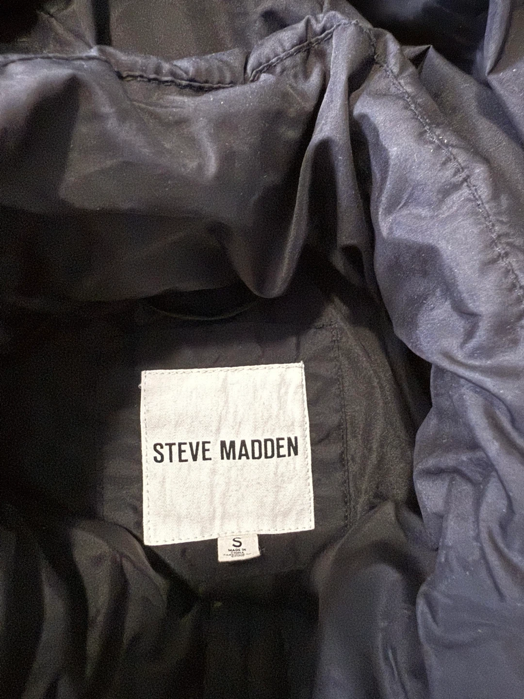 Selling a Steve Madden puffer coat in black. It's a size small and in great condition. Perfect for keeping warm during those chilly Canadian days!