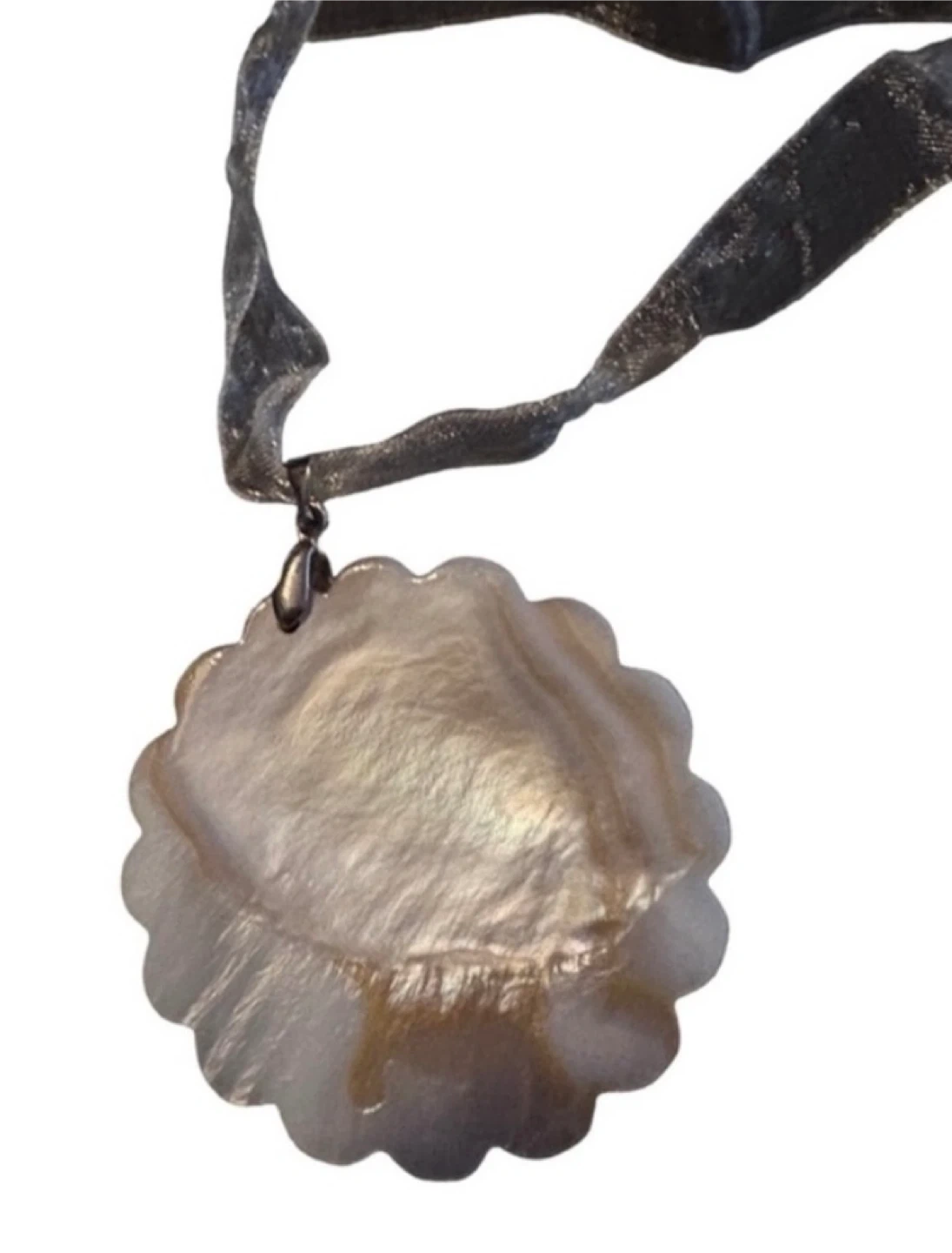 β’ πΌ White floral pendant necklace with a textured ribbon-style chain β soft, sculptural, and boutique-inspired
