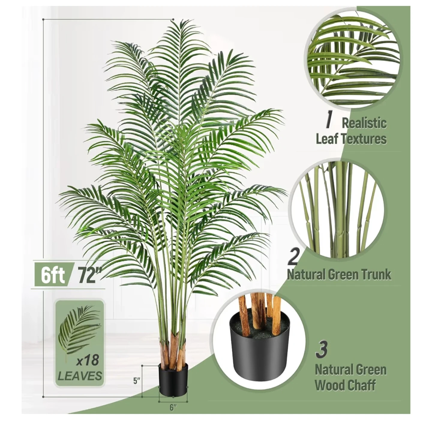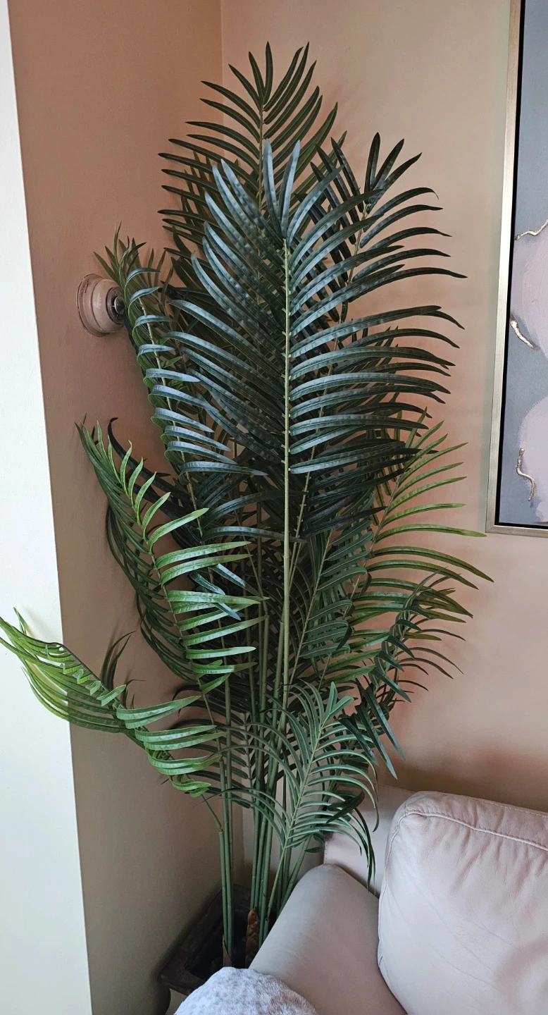 Selling a 6ft artificial palm tree! It features realistic leaf textures and a natural green trunk. The base is filled with natural green wood chaff. It's a great way to add some greenery to your home without the maintenance of a real plant