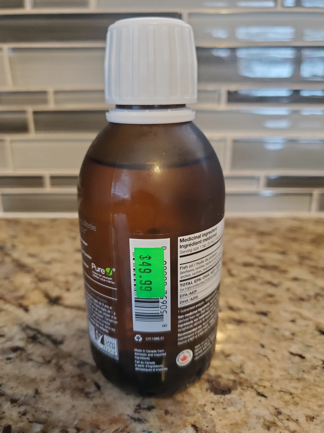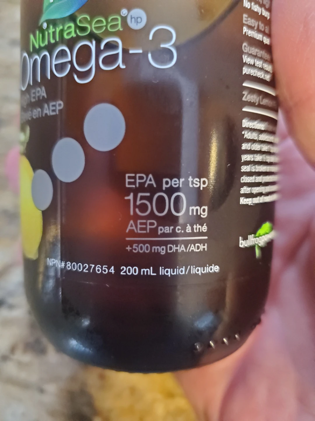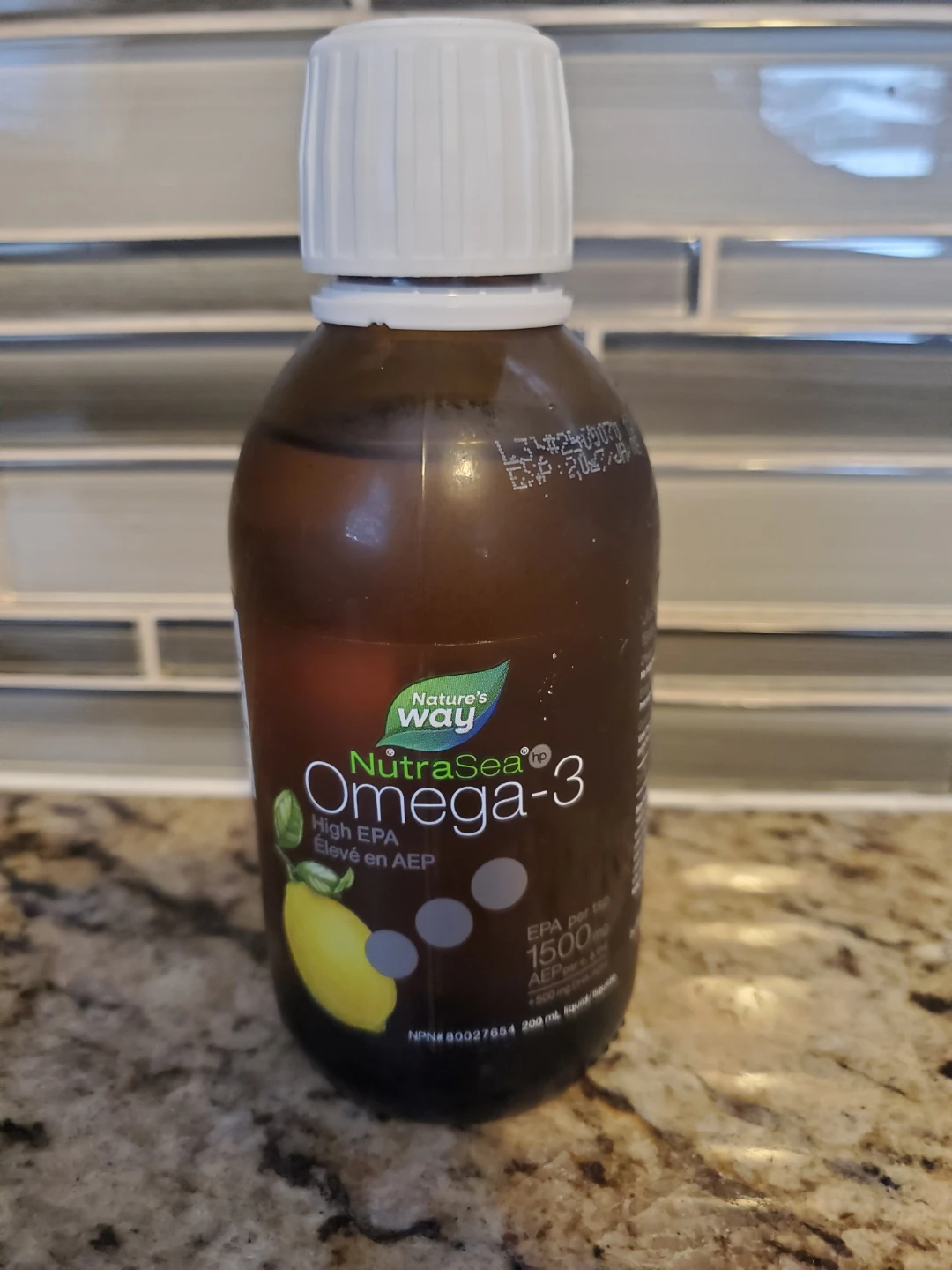 Selling a bottle of NutraSea Omega-3 liquid. It contains 1500mg of EPA per teaspoon and 500mg of DHA/ADH. The bottle contains 200mL of liquid. Expiry date is 2027 July 23