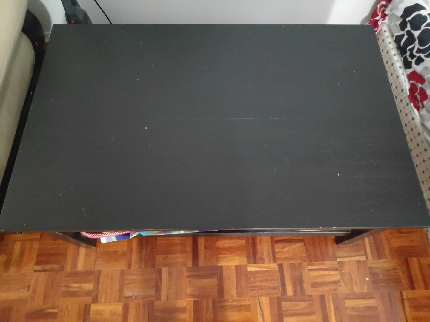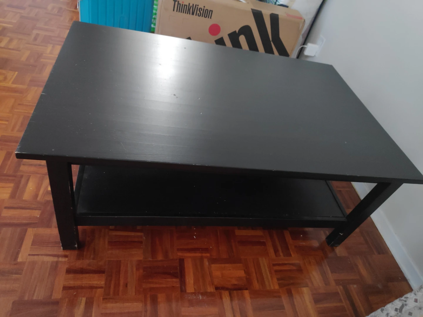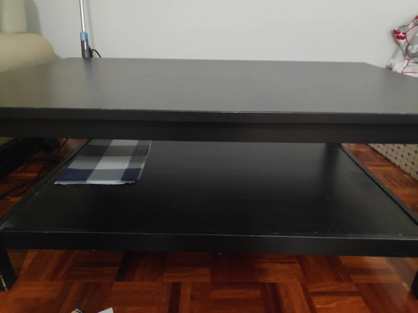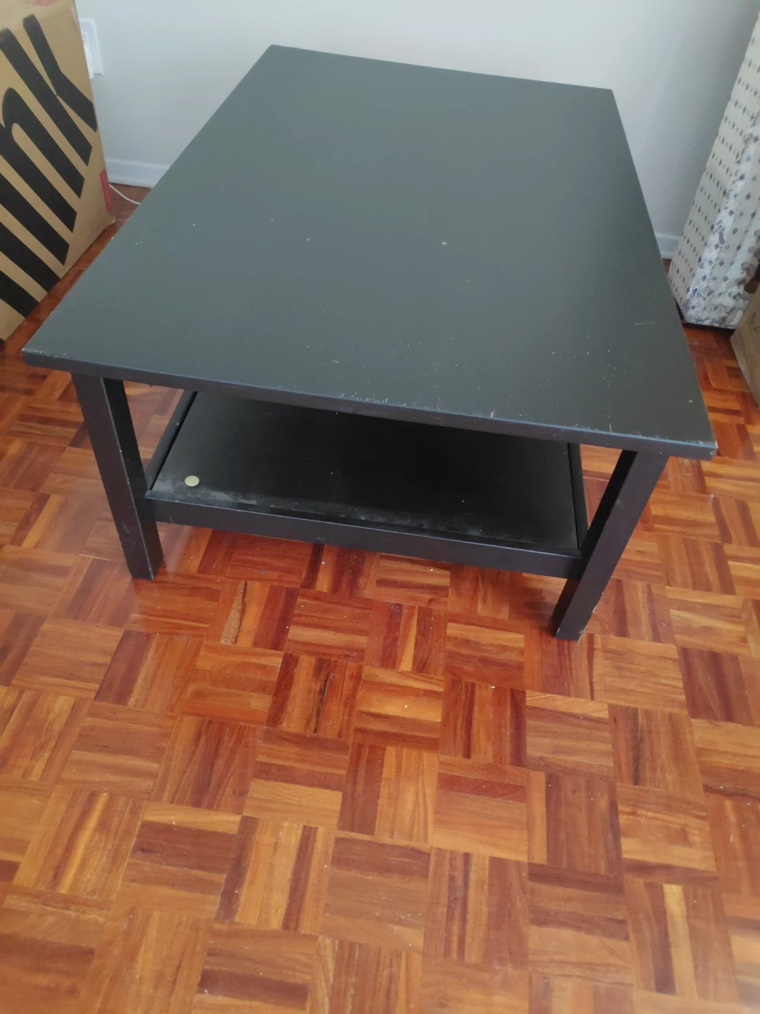 Selling a black coffee table. It's in good condition and has a shelf underneath for extra storage. Bit here and there small scratches but very sturdy. Perfect for any living room!