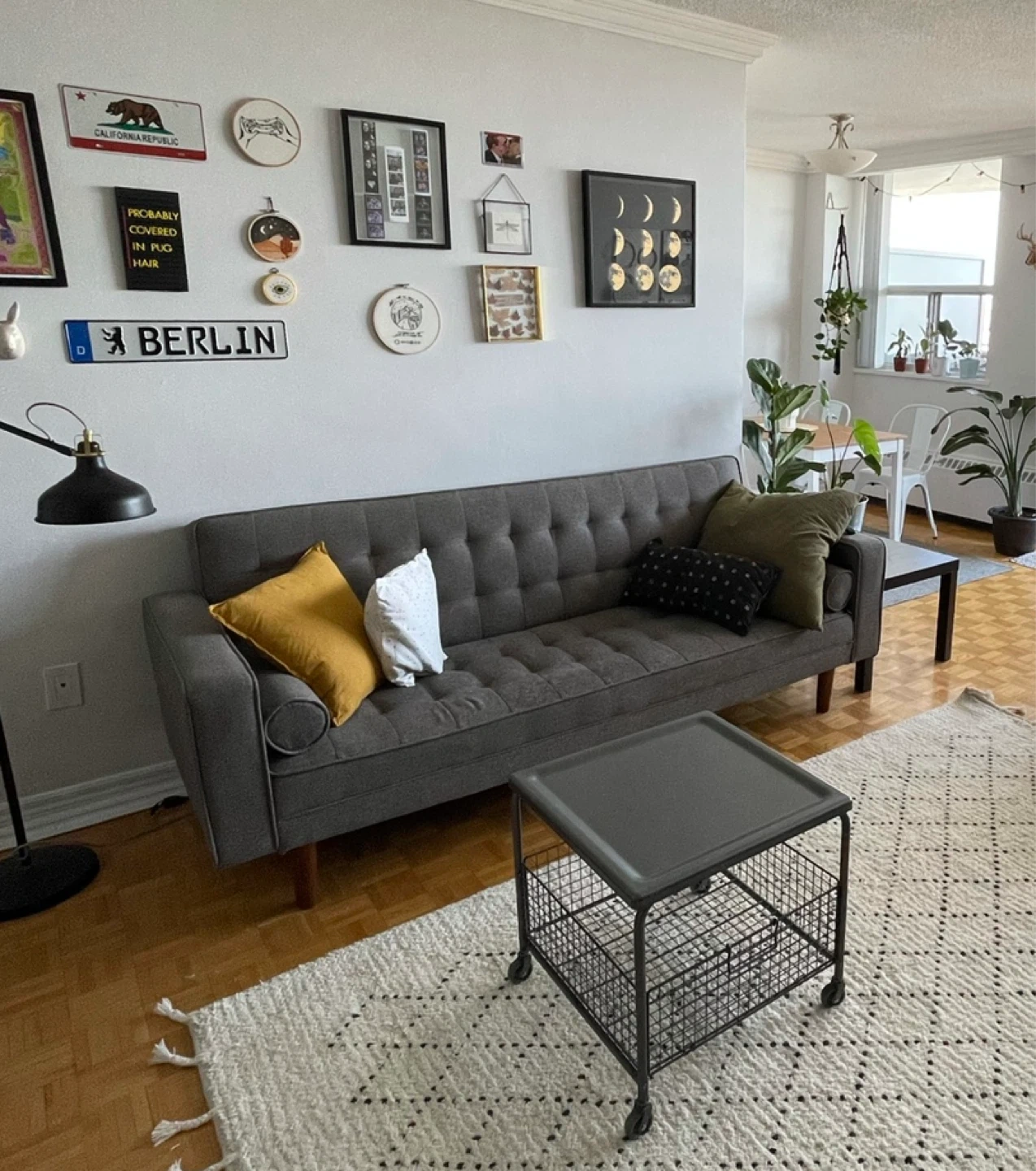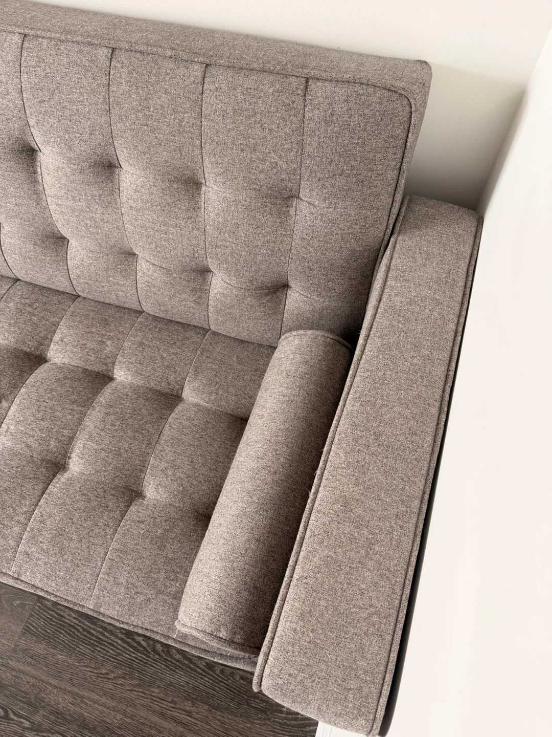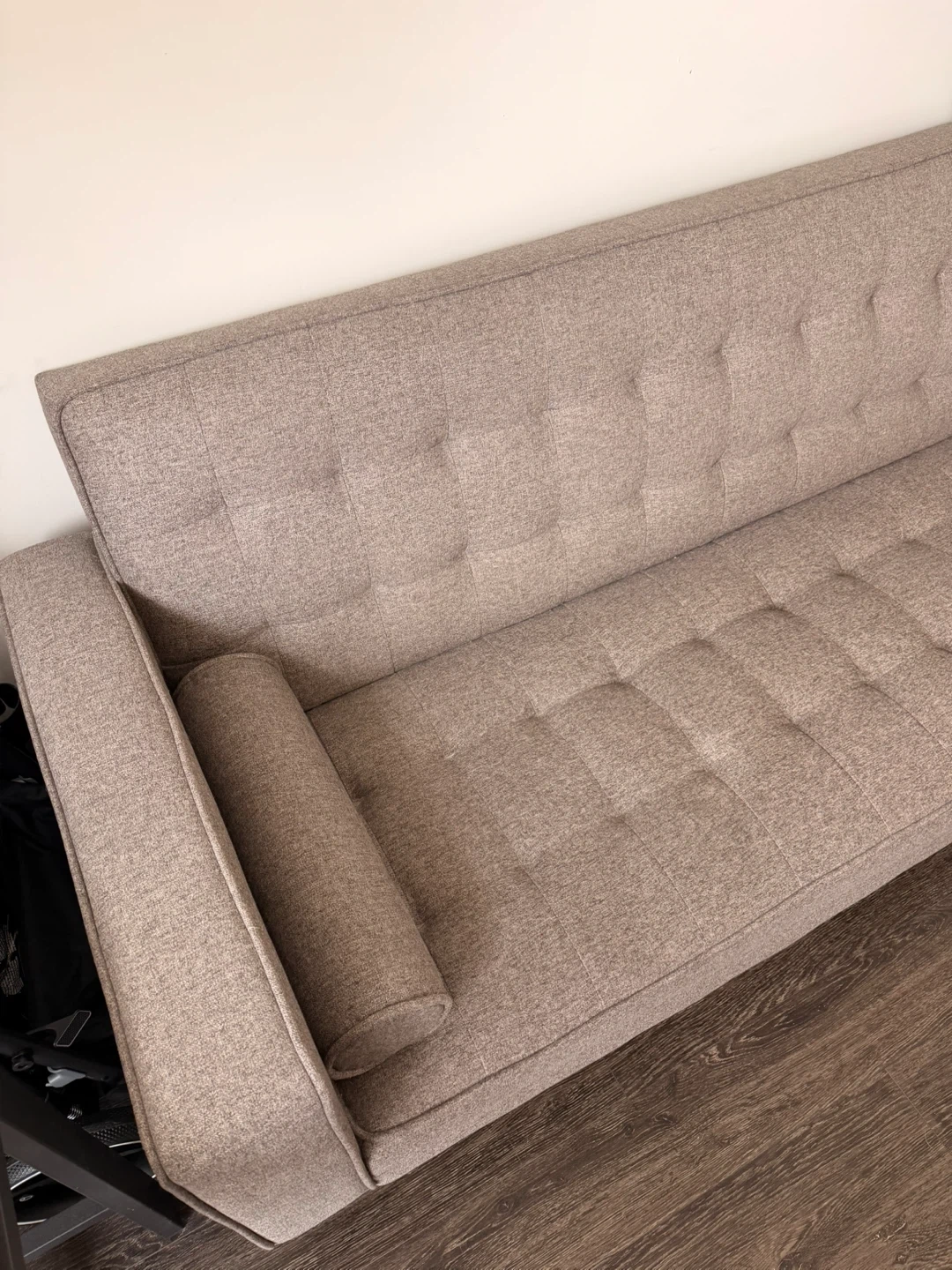 The sofa is clean, well maintained, and very comfortable both as a sofa and as a bed. Neutral color that fits easily with different decor styles.