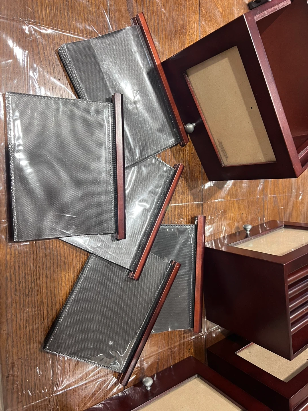 In good condition. Holds about 560 pictures. Bought from The Bay. Box could also be hung. Picture size 4X6.