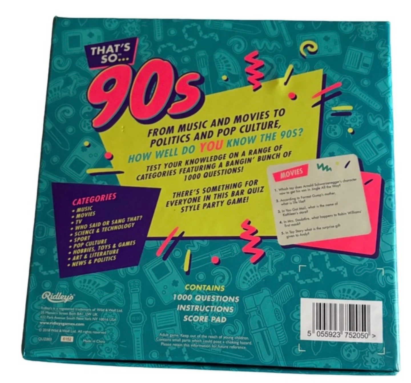 Take a trip back to the raddest decade with this vibrant bar-style trivia game packed with 1000 questions across 10 iconic categories—from music and movies to tech, toys, and pop culture. Perfect for parties, family nights, or gifting to your favorite 90s kid.