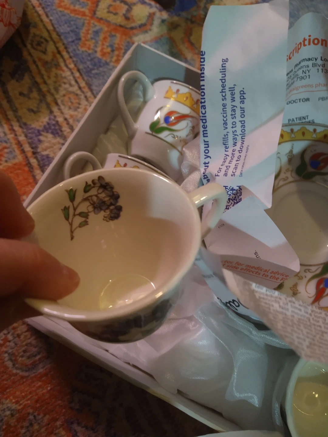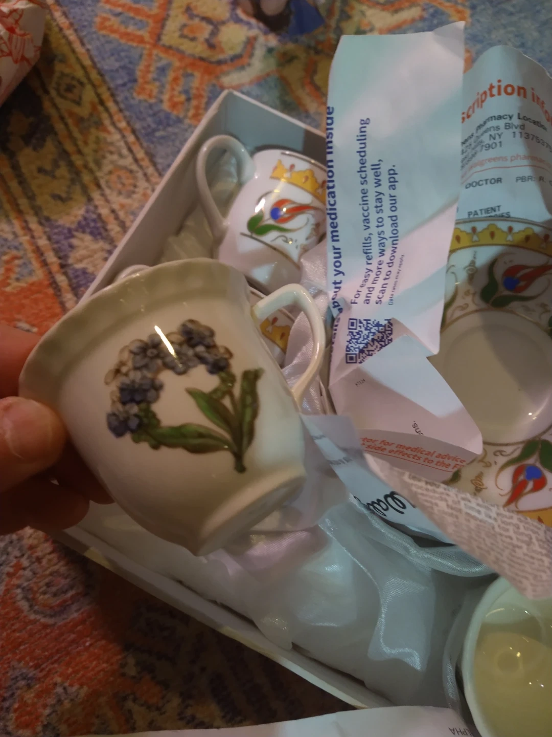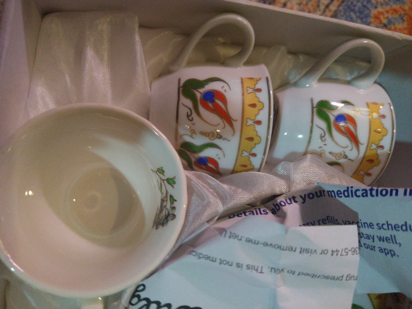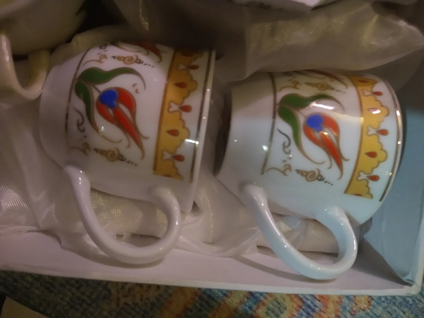 This is a beautiful decorative tea cup set and Turkish coffee set. It includes several cups and saucers with intricate floral and Turkish-inspired designs. The price is for the lot.