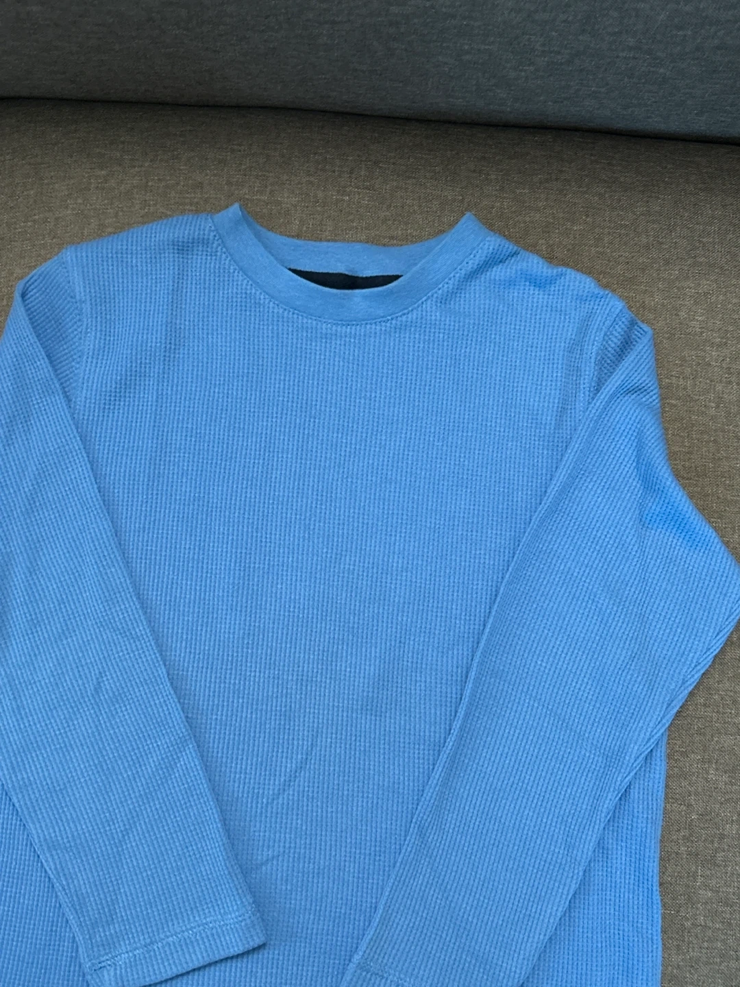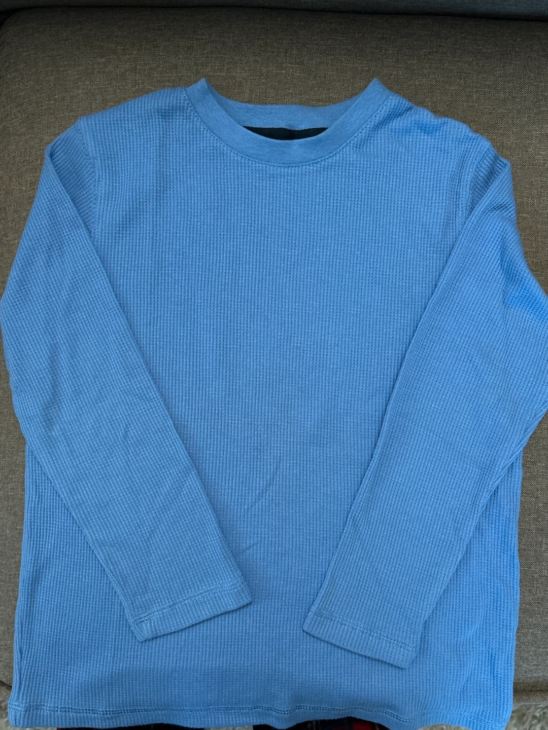 Here's a comfy long-sleeve shirt for your little one! It's a George brand, size 6X, and has a nice waffle knit texture in a lovely blue colour. Perfect for layering or wearing on its own
