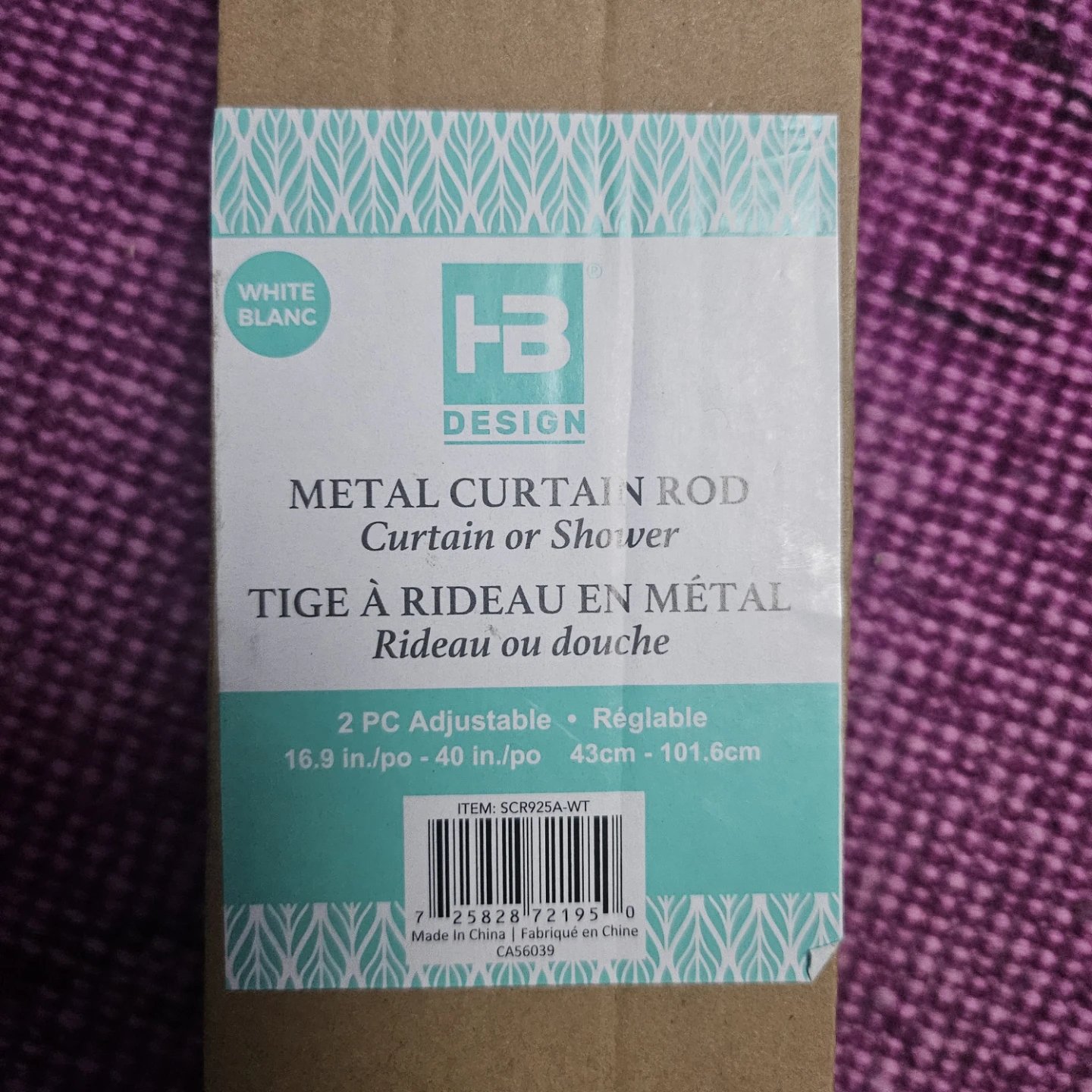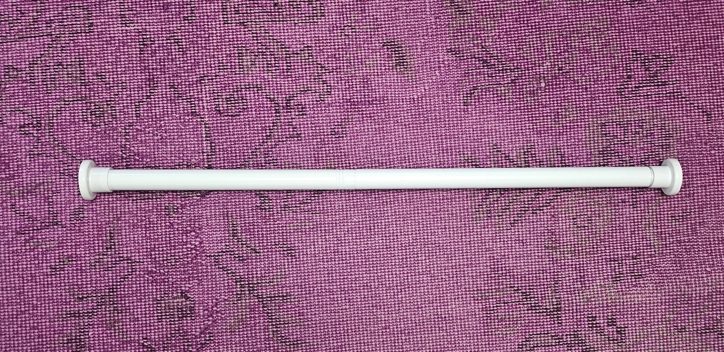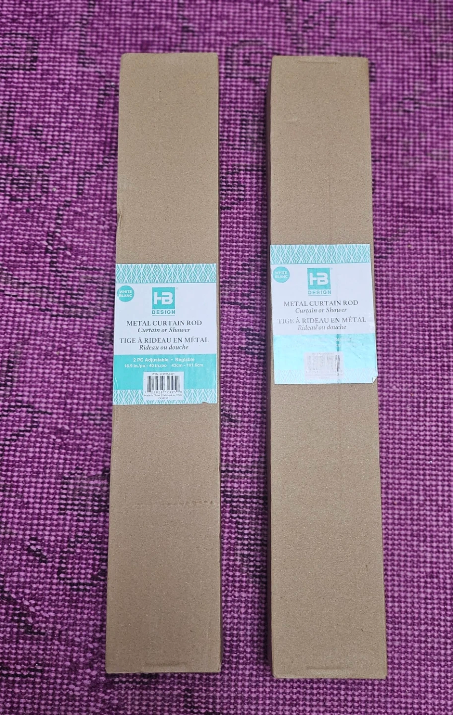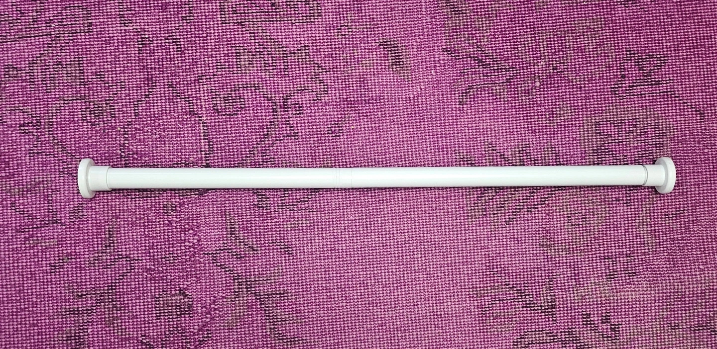 Selling a HB Design metal curtain or shower rod in white. It's an adjustable telescopic tension rod, it can extend from 16.9 inches (43 cm) to 40 inches (101.6 cm). The box is included!