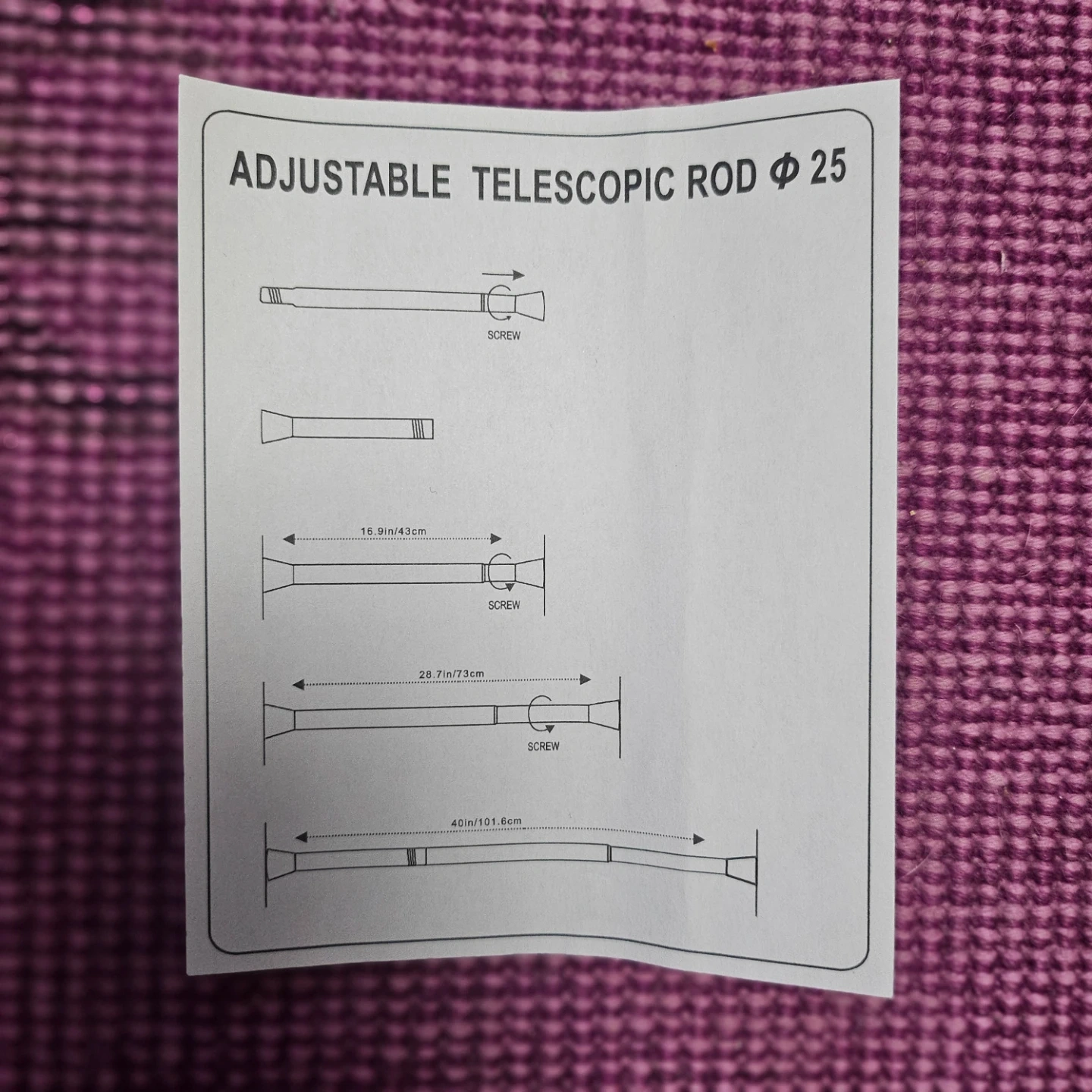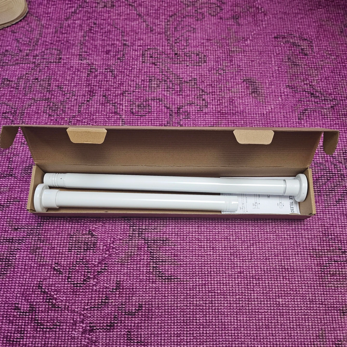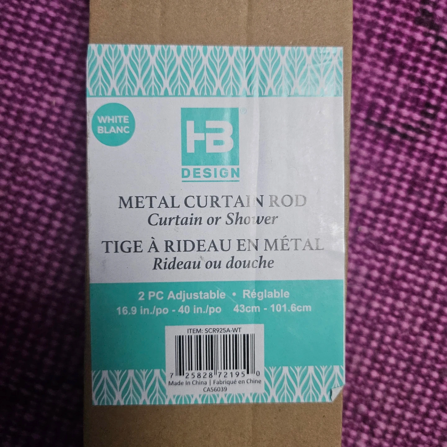 Selling a HB Design metal curtain or shower rod in white. It's an adjustable telescopic tension rod, it can extend from 16.9 inches (43 cm) to 40 inches (101.6 cm). The box is included!