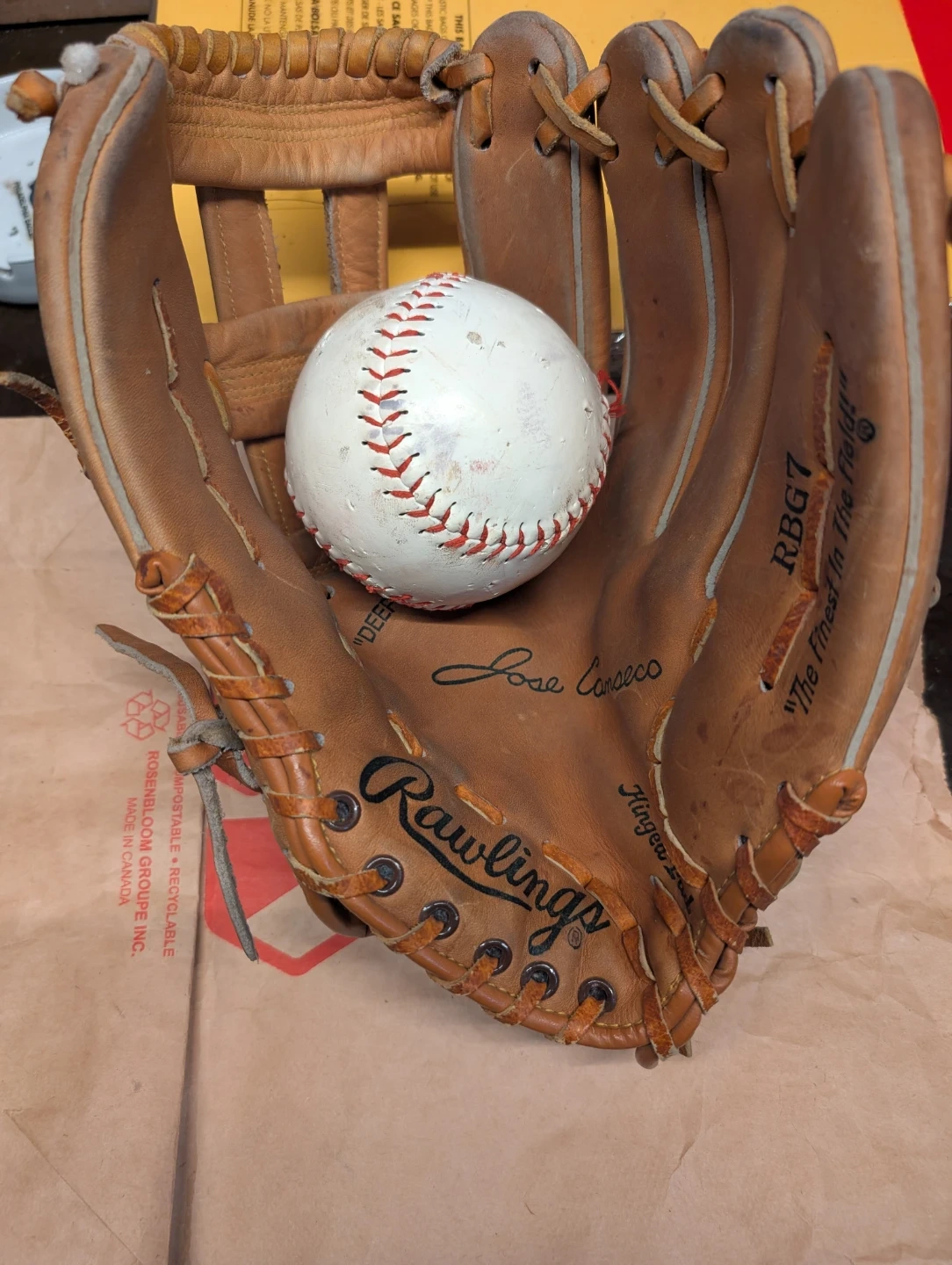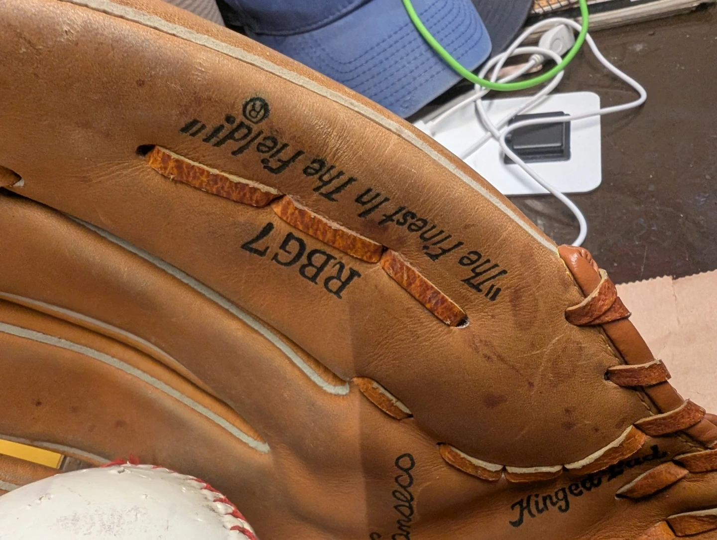 Selling a Rawlings baseball glove, model RBG7. It's in used condition, but still has lots of life left. The glove features the phrase "The Finest In The Field".