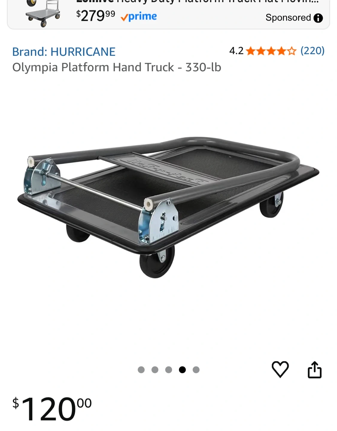 I'm selling Olympia Platform Hand Truck with a 330-lb capacity. It's still in its original packaging.