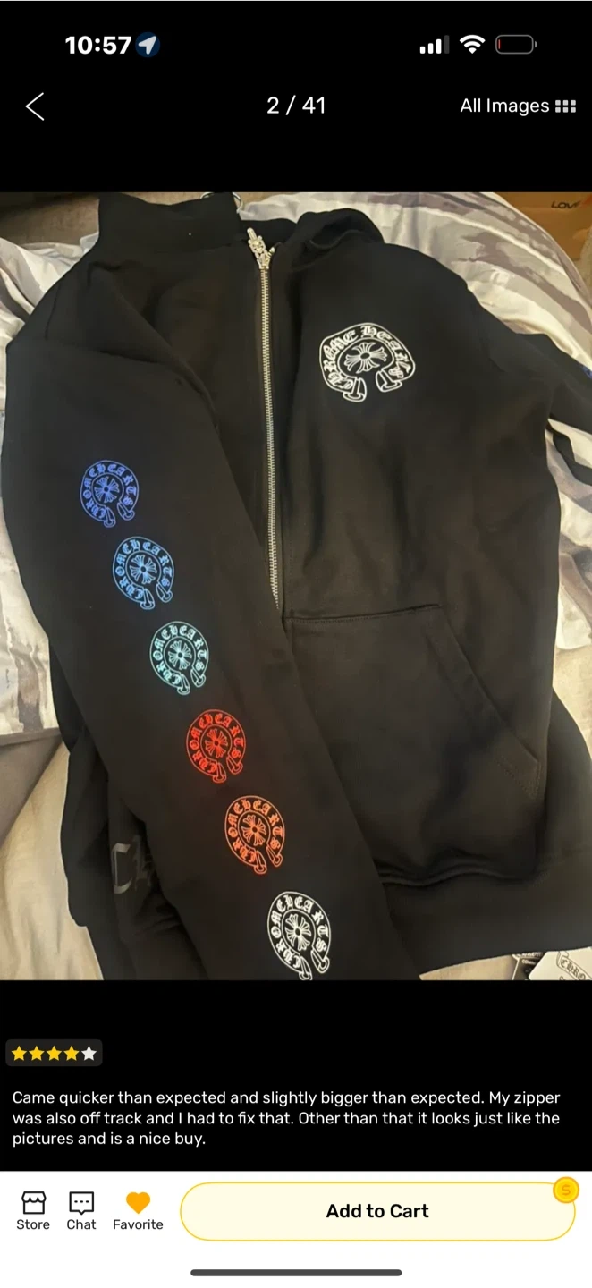 Selling a Chrome Hearts black zip-up hoodie. It features the iconic Chrome Hearts logo on the chest and down the sleeve. Perfect for adding a touch of edgy style to your wardrobe!