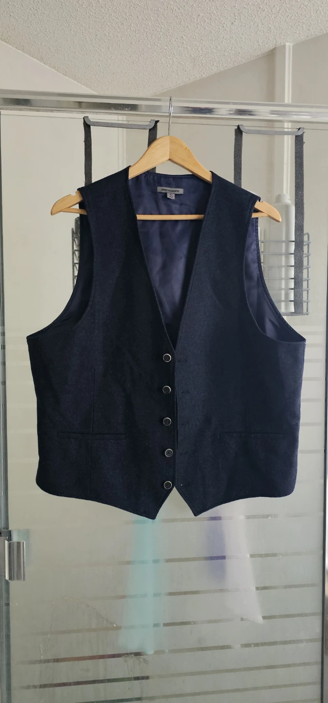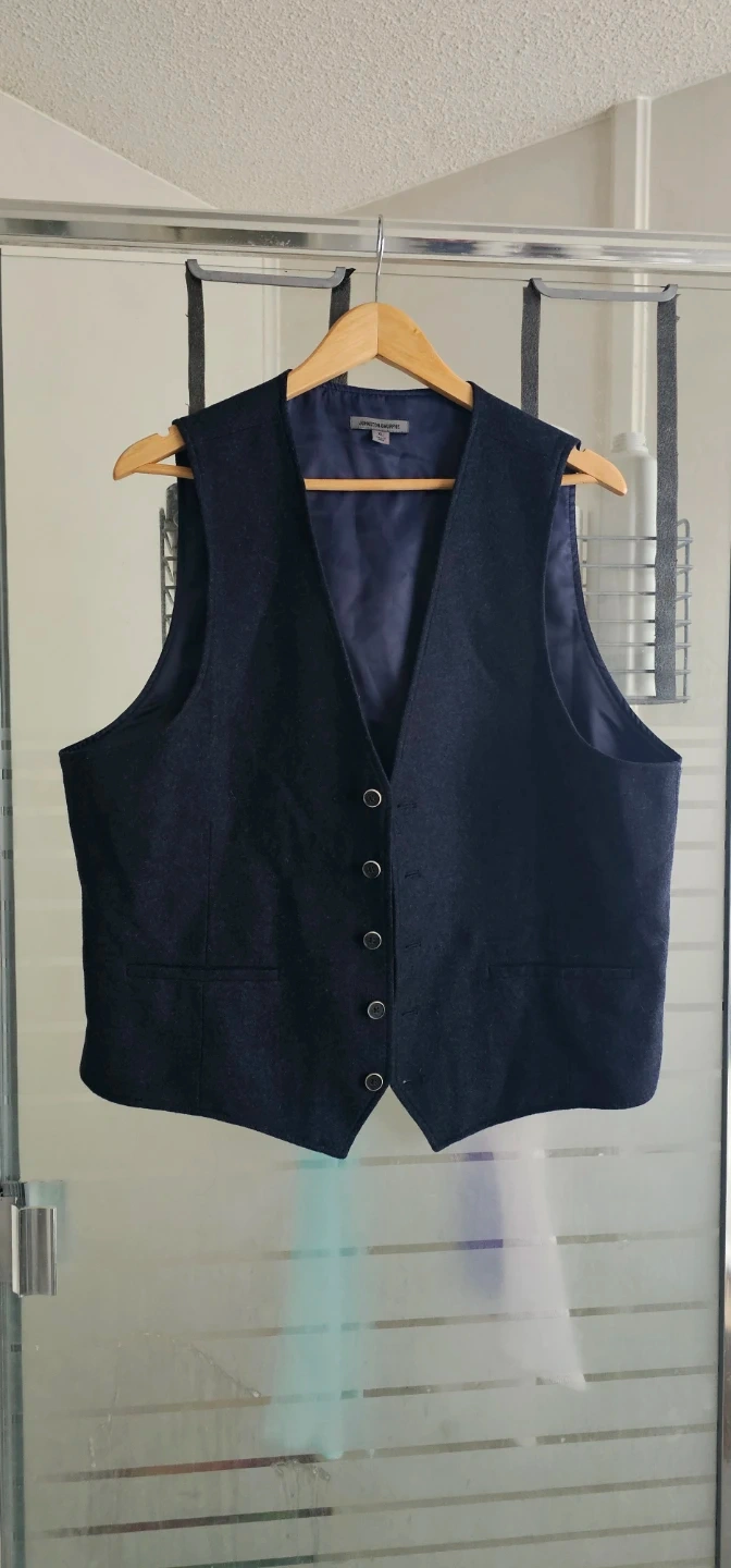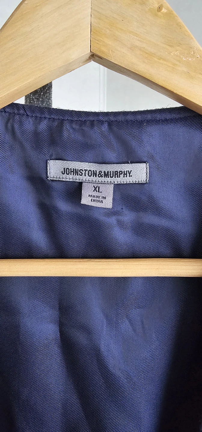 Selling a Johnston & Murphy vest in size XL. It's a nice navy colour and made of 80% wool and 20% nylon, perfect for layering!